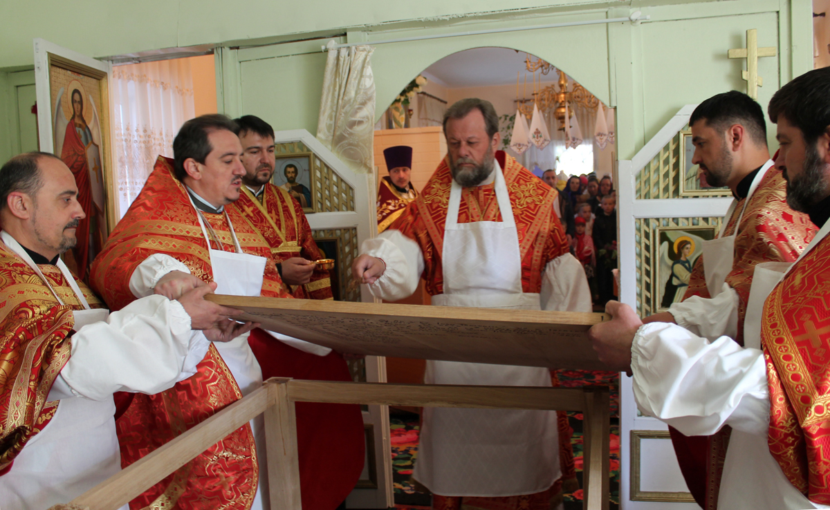 По заамвонной молитве последовал крестный ход вокруг храма с чтениями Евангельских зачал, после чего последовал благодарственный молебен.