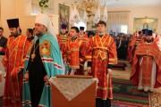 По окончании молебна, Высокопреосвященный Митрополит Владимир обратился к присутствующим со словами благодарности за теплый прием, после чего поздравил всех с совершившимся освящением престола храма, и выразил надежду, что храм всегда будет полон верующими, которые неустанно будут благодарить Всемилостивого Бога за всего Его к нам благодеяния.