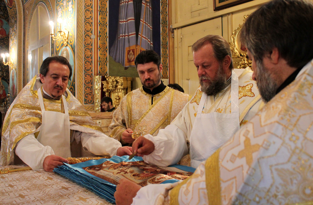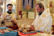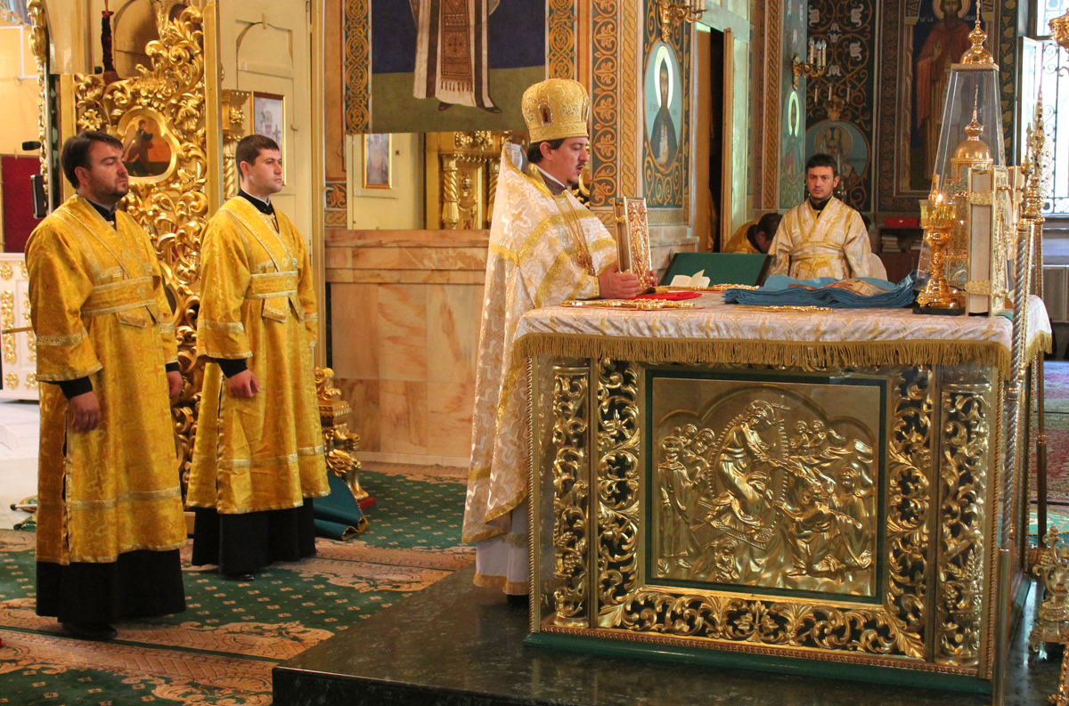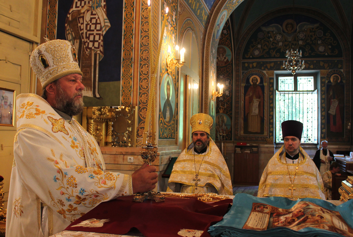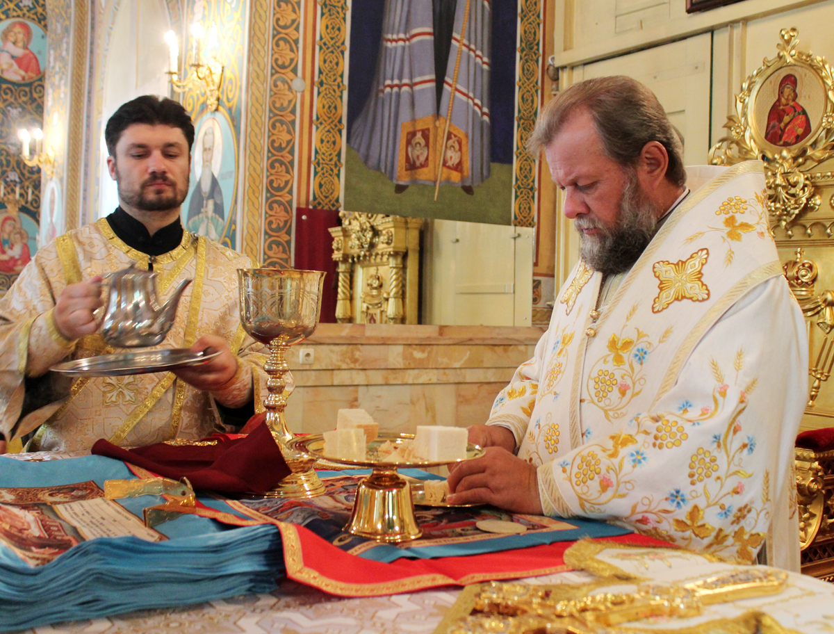 Его Высокопреосвященству сослужили митрофорный протоиерей Вадим Кейбаш, секретарь Митрополии и соборное духовенство.