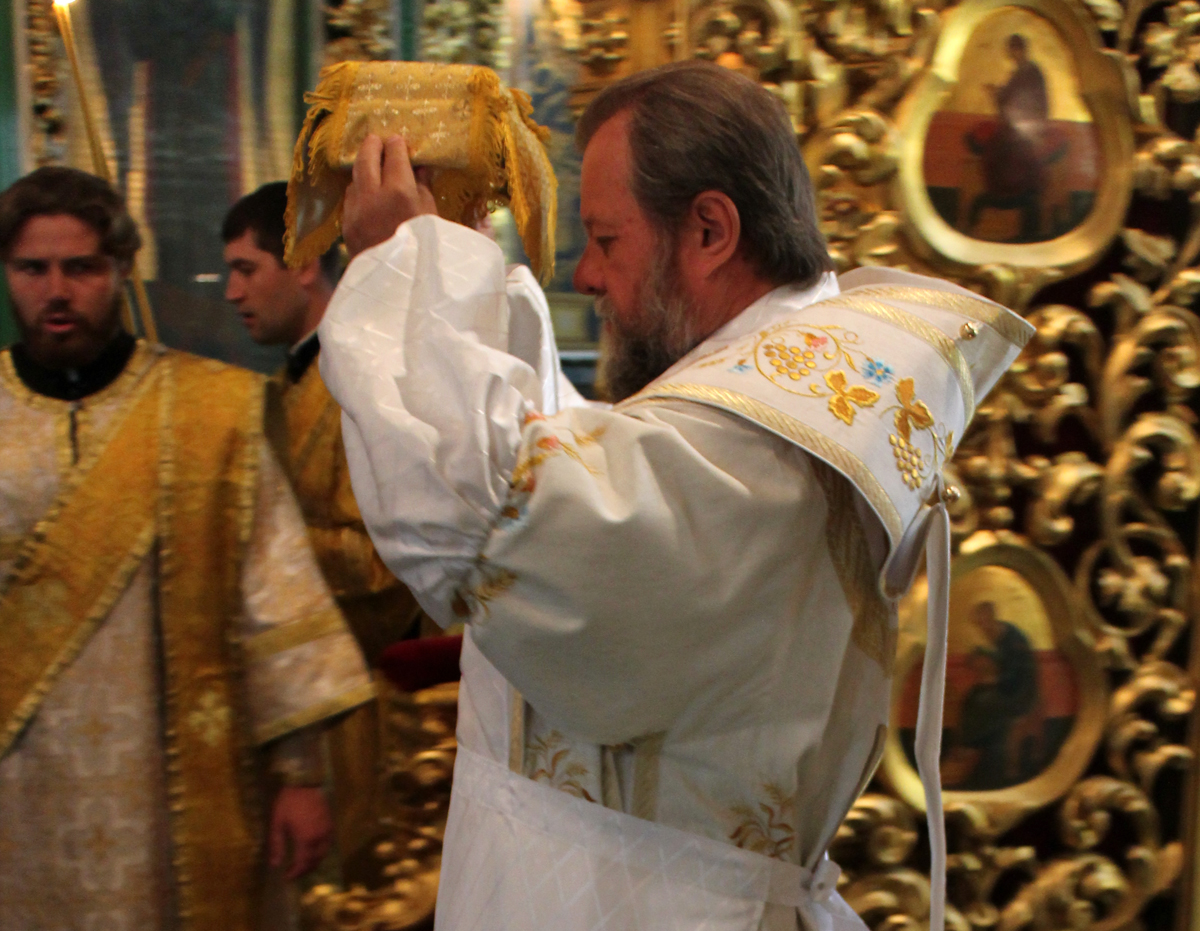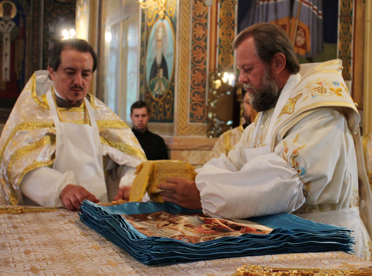 Антиминс – неотъемлемая часть престола, без которой нельзя совершать литургию. Антиминс разворачивается в определенный момент богослужения, по окончании которого свертывается особым образом и хранится в специальном плате – илитоне.
