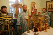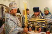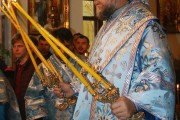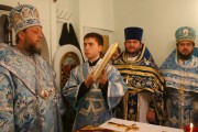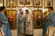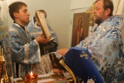 На малом входе, настоятель Покровского храма свящ. Виктор Лукин был возведен в сан протоиерея, а свящ. Вячеслав Ротарь удостоился золотого наперсного креста.