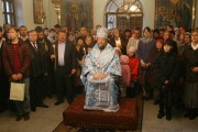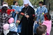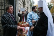 Прот. Виктор Лукин, настоятель Покровского храма, выразил от лица всей приходской общины сердечные слова благодарности архипастырю за непрестанную поддержку и отеческие советы по восстановлению разрушенного храма. Священник выразил надежду, что Высокопреосвященный владыка Владимир и далее будет поддерживать приходскую общину в этом богоугодном деле. В знак признательности и сыновнего почтения, отец Виктор Лукин передал в дар Предстоятелю образ Божией Матери «Покрова», искусно выполненный столичным умельцем.