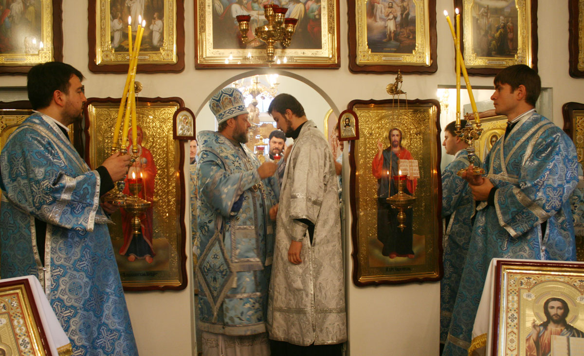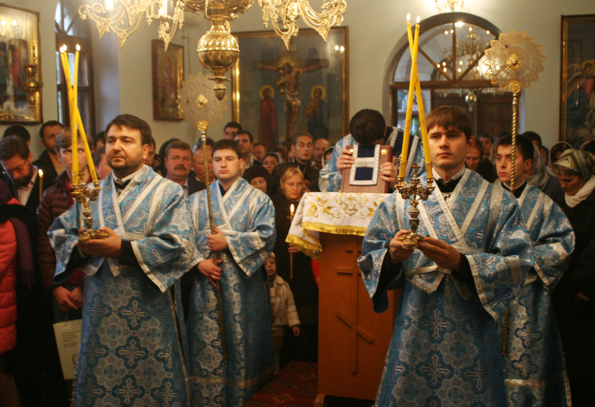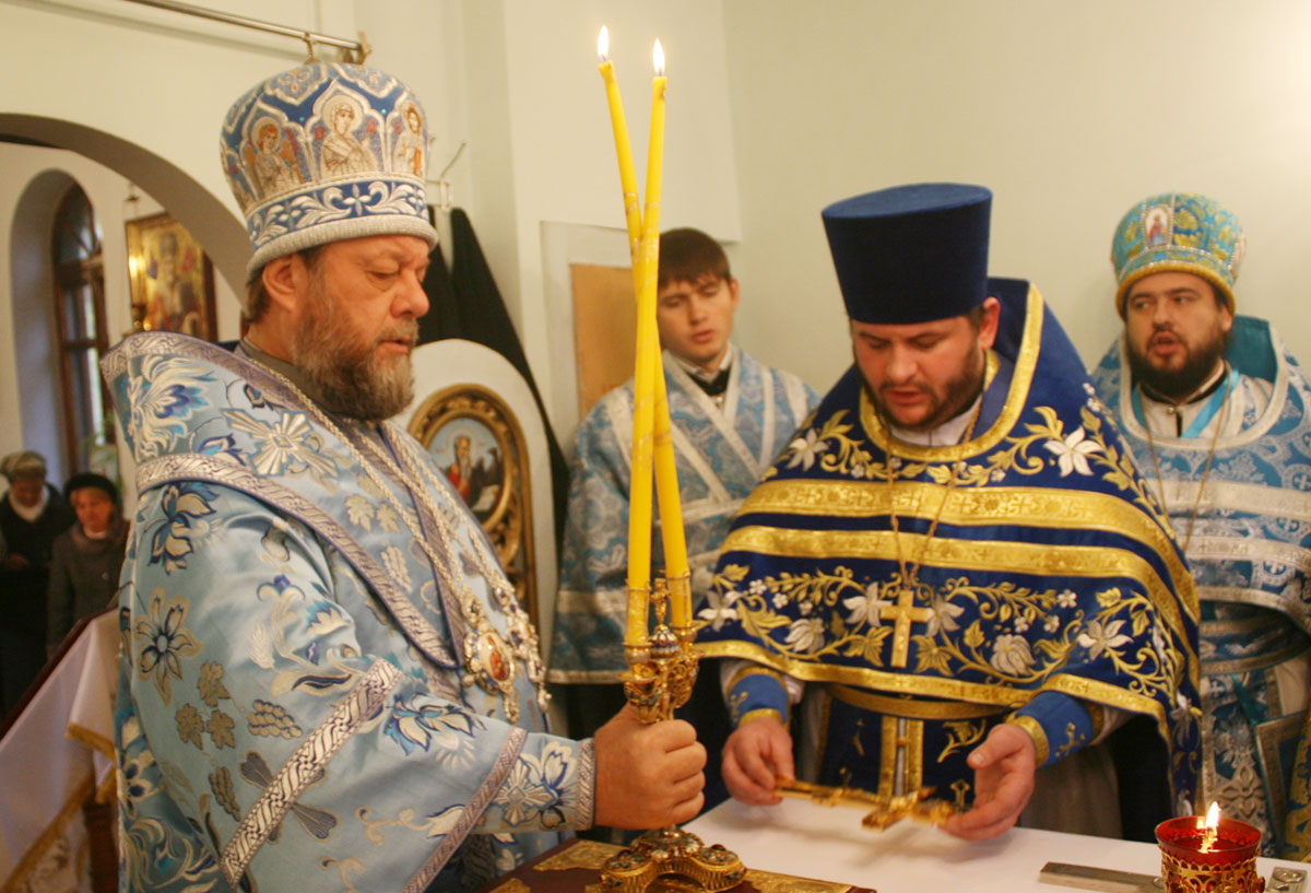 На малом входе, настоятель Покровского храма свящ. Виктор Лукин был возведен в сан протоиерея, а свящ. Вячеслав Ротарь удостоился золотого наперсного креста.