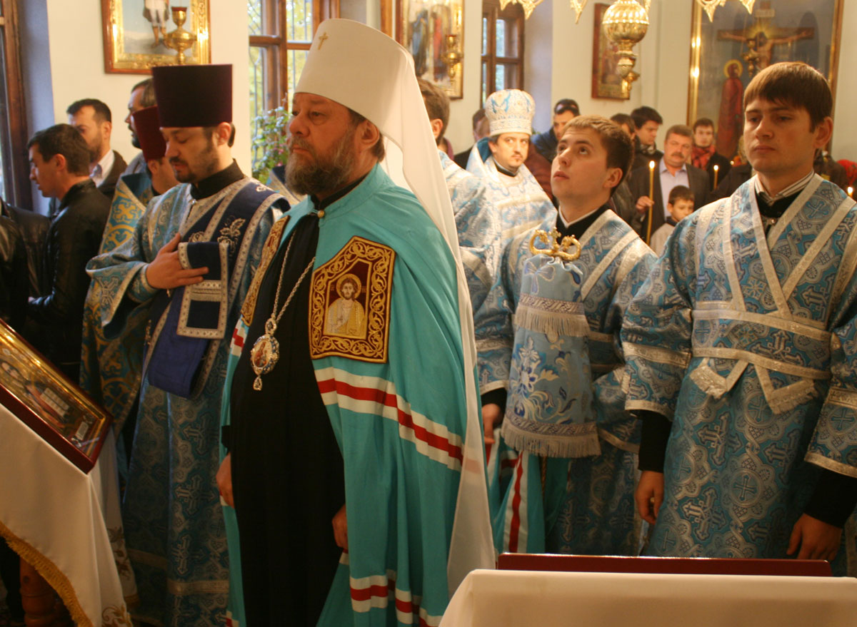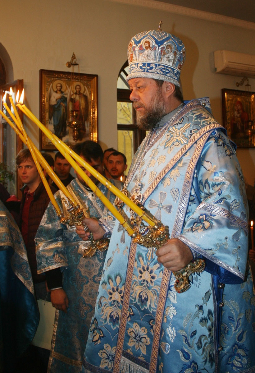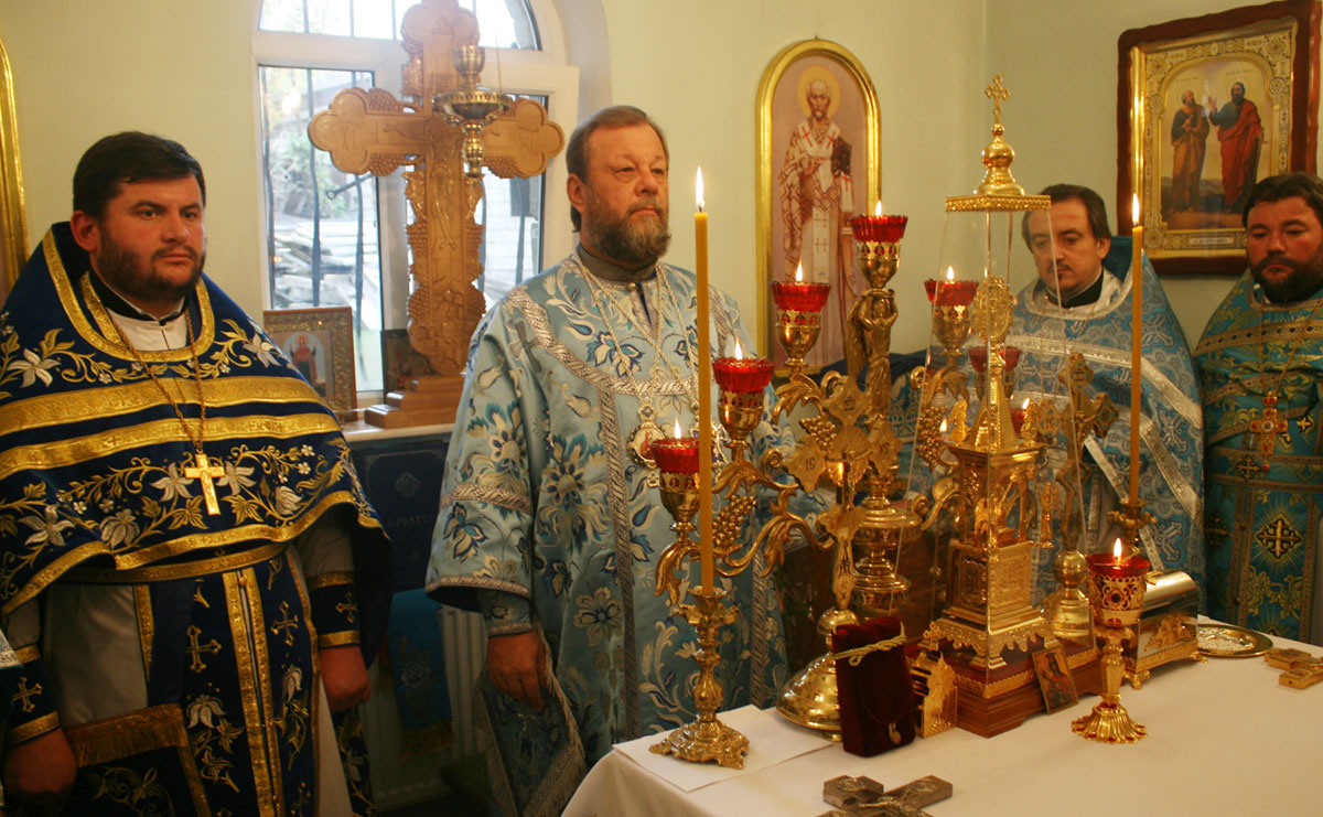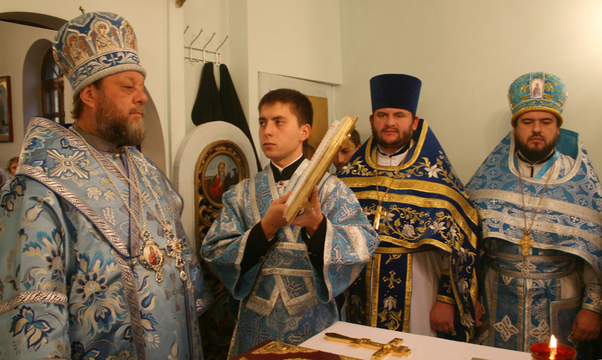 Прот. Виктор Лукин, настоятель Покровского храма, выразил от лица всей приходской общины сердечные слова благодарности архипастырю за непрестанную поддержку и отеческие советы по восстановлению разрушенного храма. Священник выразил надежду, что Высокопреосвященный владыка Владимир и далее будет поддерживать приходскую общину в этом богоугодном деле. В знак признательности и сыновнего почтения, отец Виктор Лукин передал в дар Предстоятелю образ Божией Матери «Покрова», искусно выполненный столичным умельцем.