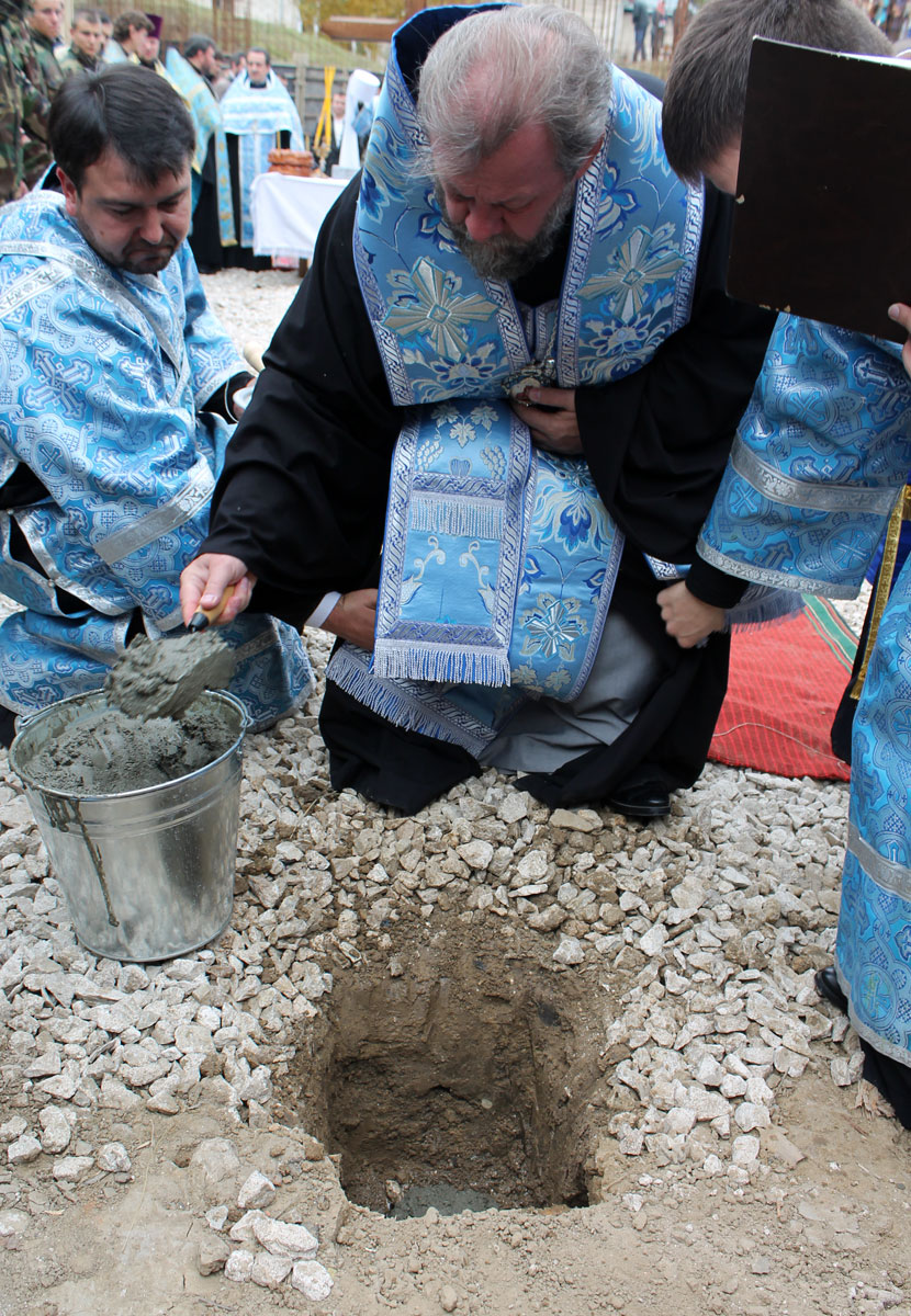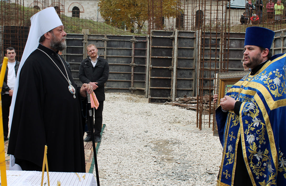В продолжение архипастырского визита, Митрополит Владимир совершил чин освящения закладного камня на месте старого храма, разрушенного в годы советской власти.