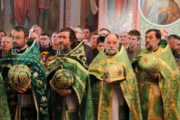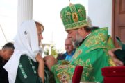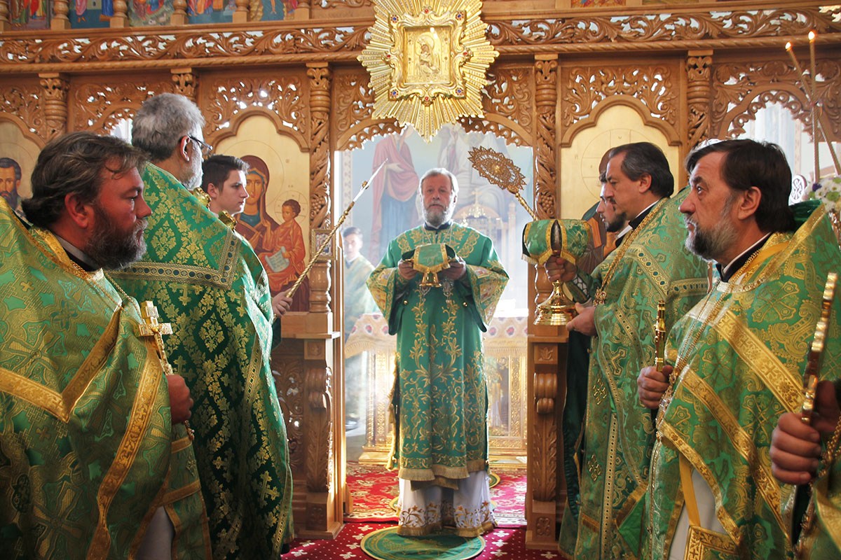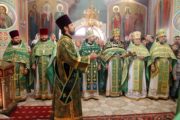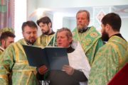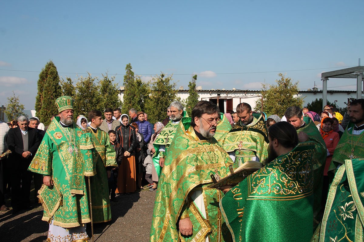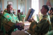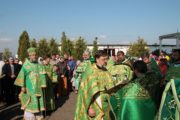 По окончании богослужения последовал крестный ход вокруг храма с чтением Евангелия, после чего архипастырь возглавил благодарственный молебен.