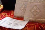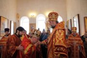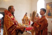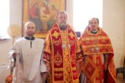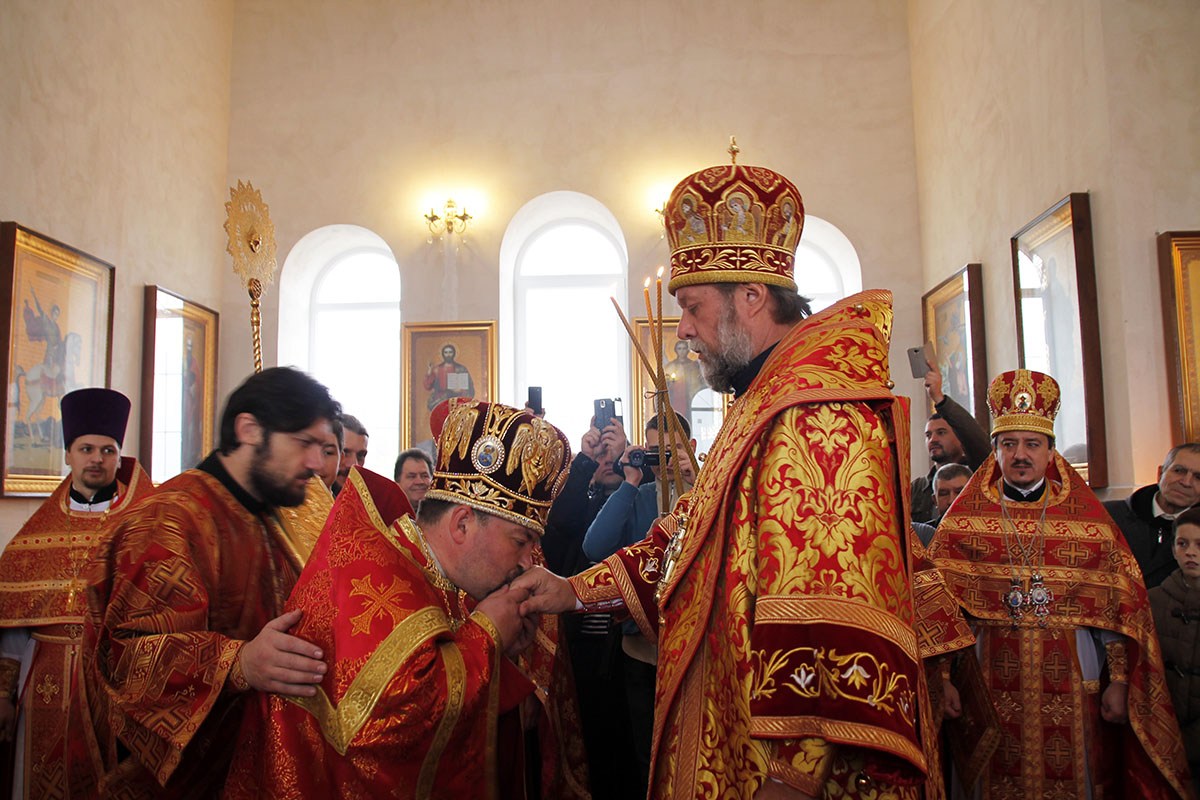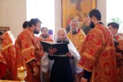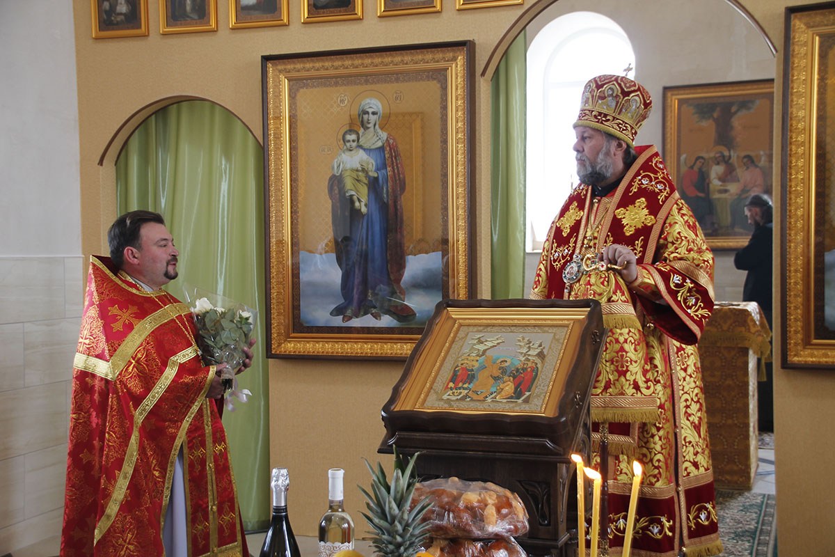 На малом входе, во внимание к пастырским трудам и трудам по благоустройству приходской жизни, настоятель Георгиевского храма прот. Евгений Ионашко был удостоен богослужебных наград – креста с украшениями и митры.