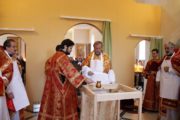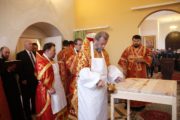 По окончании богослужения, последовал благодарственный молебен, после которого глава Православной Церкви обратился к присутствующим с архипастырским словом. Владыка Митрополит поздравил всех с окончанием строительных работ, выразив надежду, что новопостроенный и освященный храм займет важное место в жизни местных жителей.