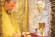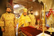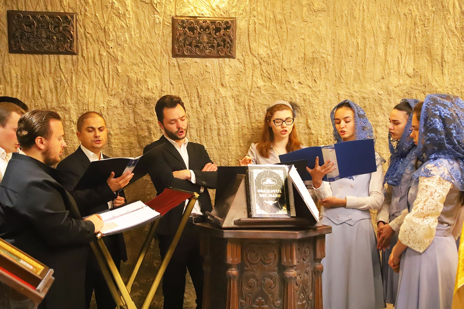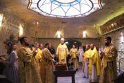 По окончании чина освящения Святого Престола, последовала праздничная Божественная литургия. Богослужебные песнопения исполнял смешанный хор под управлением пресвитеры Алины-Паулы Барбу.