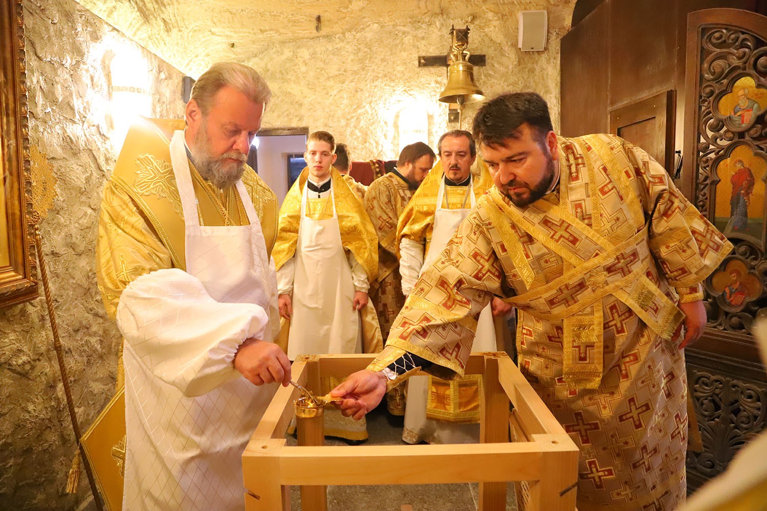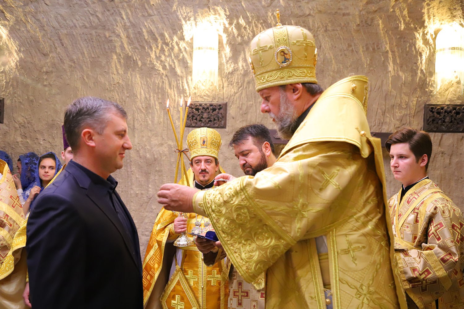 На Малом Входе, во внимание к понесенным трудам по благоустройству подземного храма, Высокопреосвященный Митрополит Владимир удостоил священника Сергея Барбу богослужебной награды — золотого наперсного креста. Также высокой церковной награды — ордена «Святитель Гавриил Бэнулеску-Бодони» 2-й степени — был удостоен главный ктитор и директор Криковского винного комбината г-н Юрий Карп.