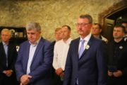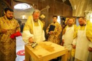 Его Высокопреосвященству сослужили: митр. прот. Вадим Кейбаш, секретарь митрополии, митр. прот. Ливиу Барбу, клирик Унгенско-Ниспоренской епархии, прот. Адриан Фрунзэ, настоятель Кишиневского храма свят. Василия Великого, иерей Сергей Барбу, настоятель храма, иерей Иоанн Брашовяну, клирик кафедрального собора Рождества Христова.