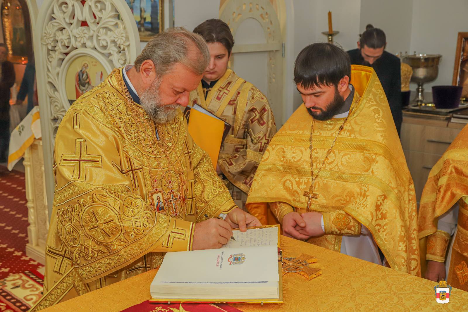 На малом входе, во внимание к усердным трудам во славу Святой Церкви, настоятель Димитриевского храма иерей Владимир Козонак был удостоен права ношения камилавки и наперсного золотого креста. Также богослужебной награды был удостоен настоятель храма святого апостола и евангелиста Иоанна Богослова с. Ишкэлэу Фэлештского района иерей Геннадий Виеру — права ношения палицы.