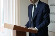 Перед началом освящения г-н Олег Ефрим обратился с приветственным словом к присутствующим, после чего в знак признательности за приложенные труды по продвижению христианско-православных ценностей в пенитенциарной системе нашей страны наградил Митрополита Владимира Крестом за Заслуги первой степени.