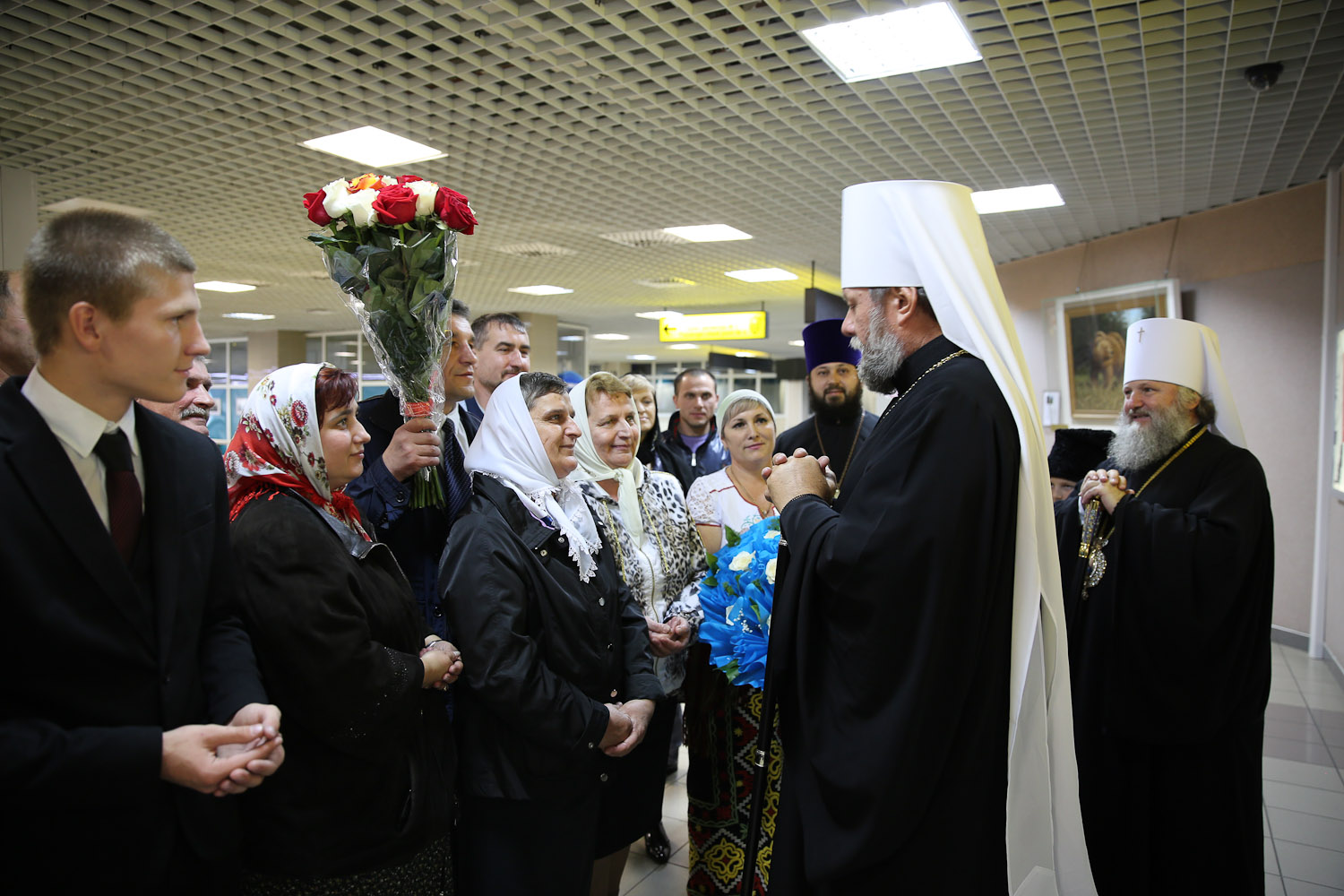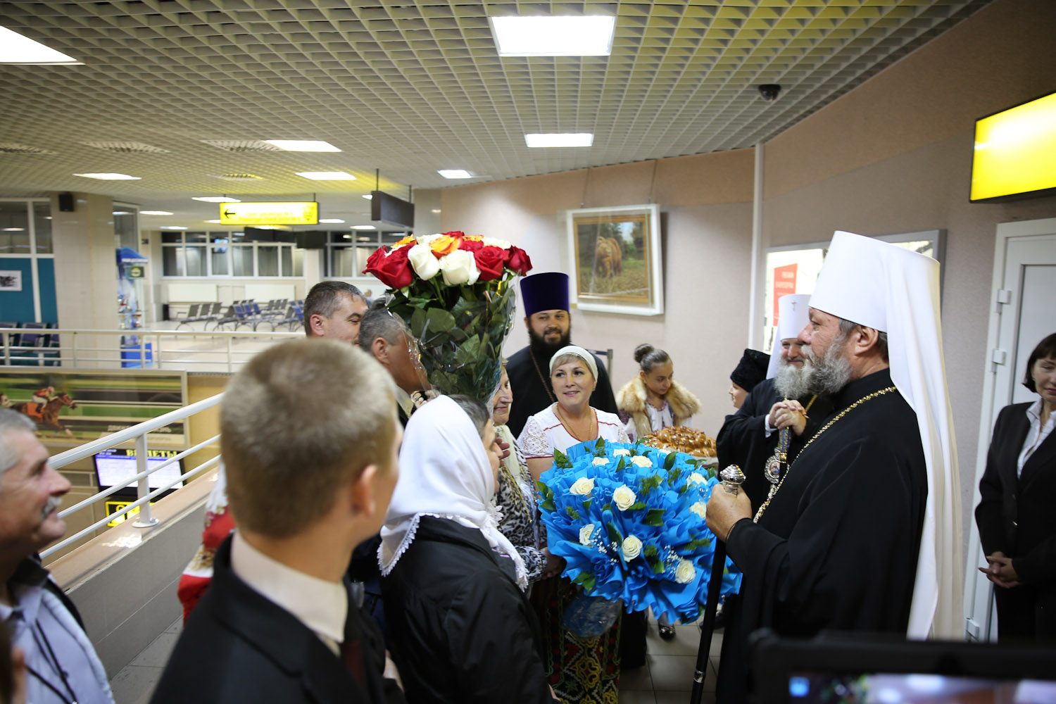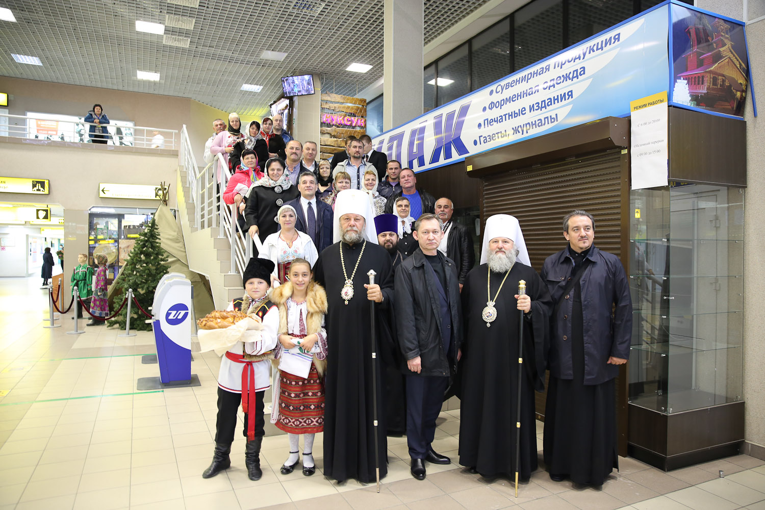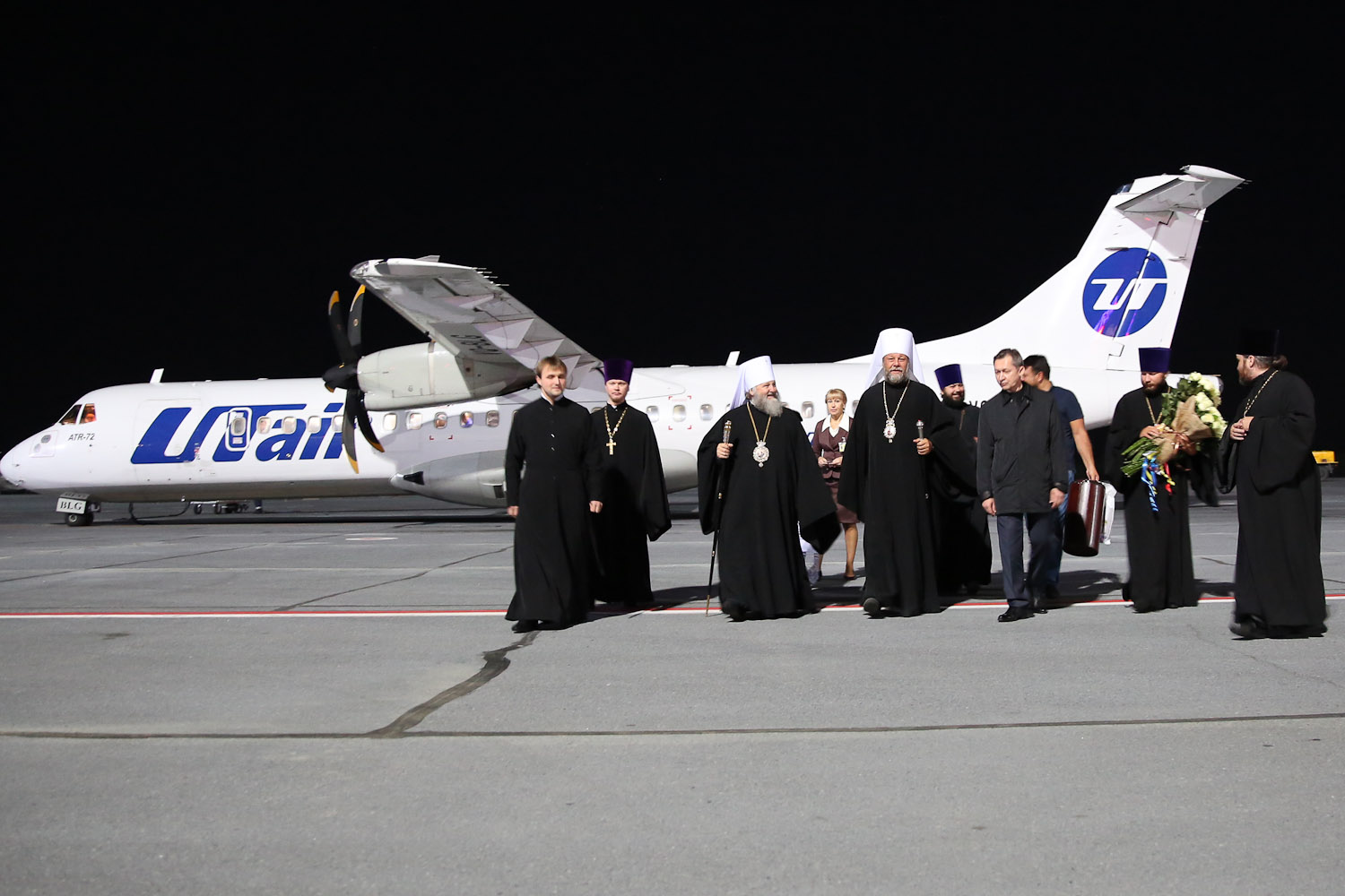 В аэропорту Сургута Митрополита Кишиневского и всея Молдовы Владимира встречали: митрополит Ханты‐Мансийский и Сургутский Павел, глава г. Сургута Д.В. Попов, благочинный Сургутского благочиния протоиерей Антоний Исаков, духовенство Ханты‐Мансийской епархии.