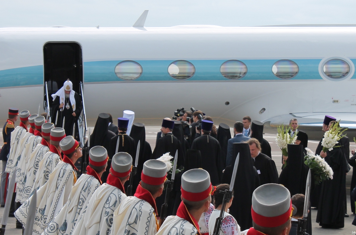 В составе официальной делегации, сопровождающей Предстоятеля Русской Православной Церкви: председатель Отдела внешних церковных связей Московского Патриархата митрополит Волоколамский Иларион, руководитель Административного секретариата Московской Патриархии епископ Солнечногорский Сергий, председатель Отдела по взаимоотношениям Церкви и общества протоиерей Всеволод Чаплин, председатель Синодального информационного отдела В.Р. Легойда, заместитель председателя Отдела внешних церковных связей Московского Патриархата протоиерей Николай Балашов, секретарь ОВЦС по межправославным отношениям протоиерей Игорь Якимчук, помощник председателя ОВЦС протодиакон Владимир Назаркин, исполняющий обязанности руководителя личного секретариата Святейшего Патриарха М.Г. Куксов.
