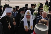 В аэропорту Кишинева Святейшего Патриарха Кирилла встречали митрополит Кишиневский и всея Молдовы Владимир, посол РФ в Молдове Ф.М. Мухаметшин, духовенство Православной Церкви Молдовы.