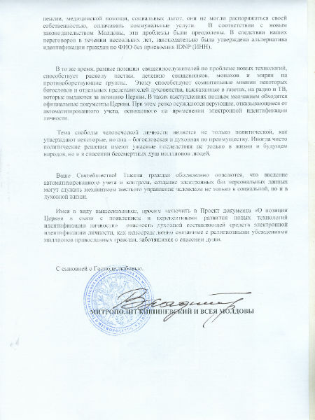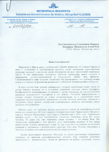 Обращение Высокопреосвященного митрополита Владимира Святейшему Патриарху Кириллу относительно проблемы новых технологий идентификации населения и их воздействия на общество
