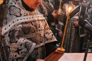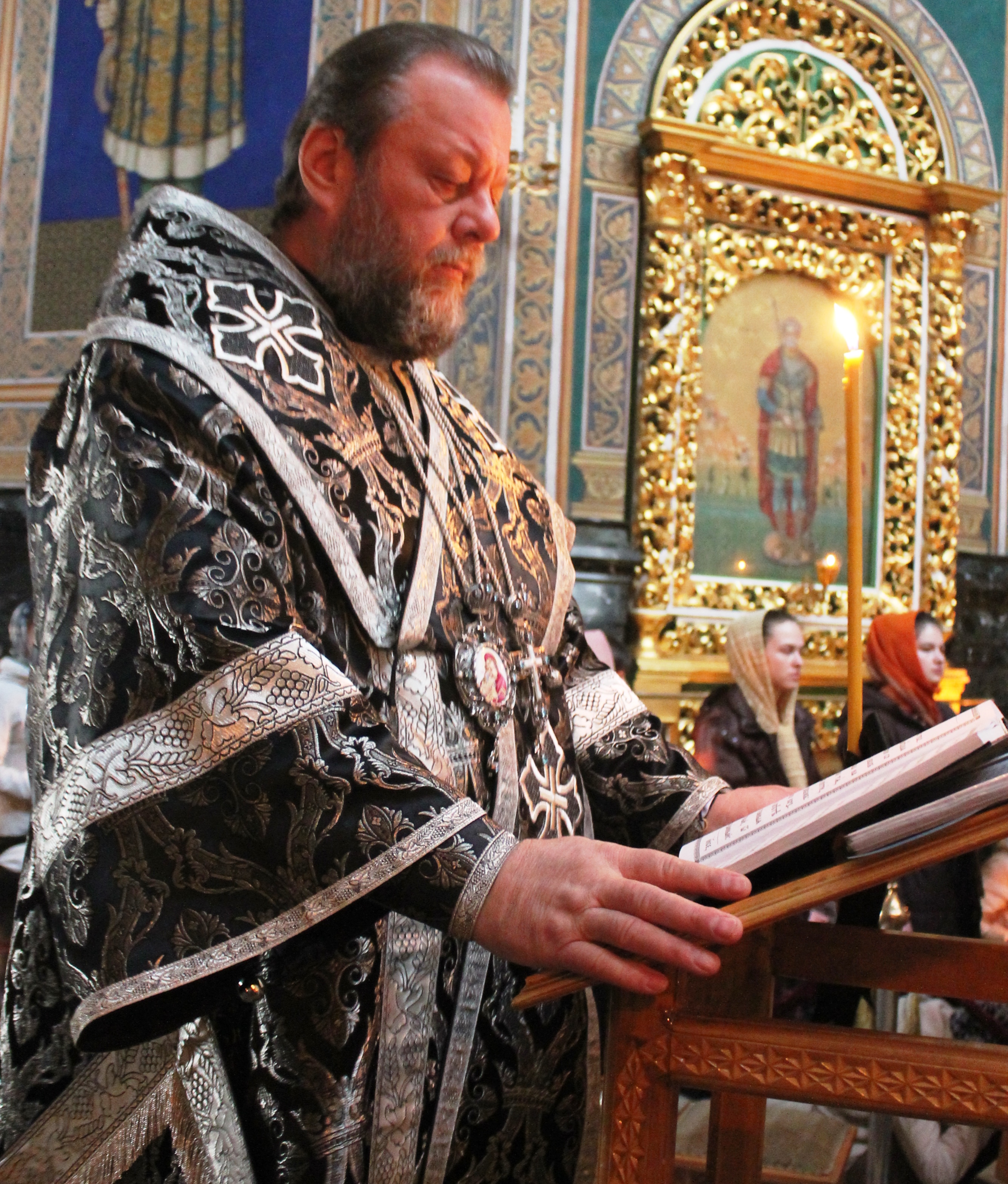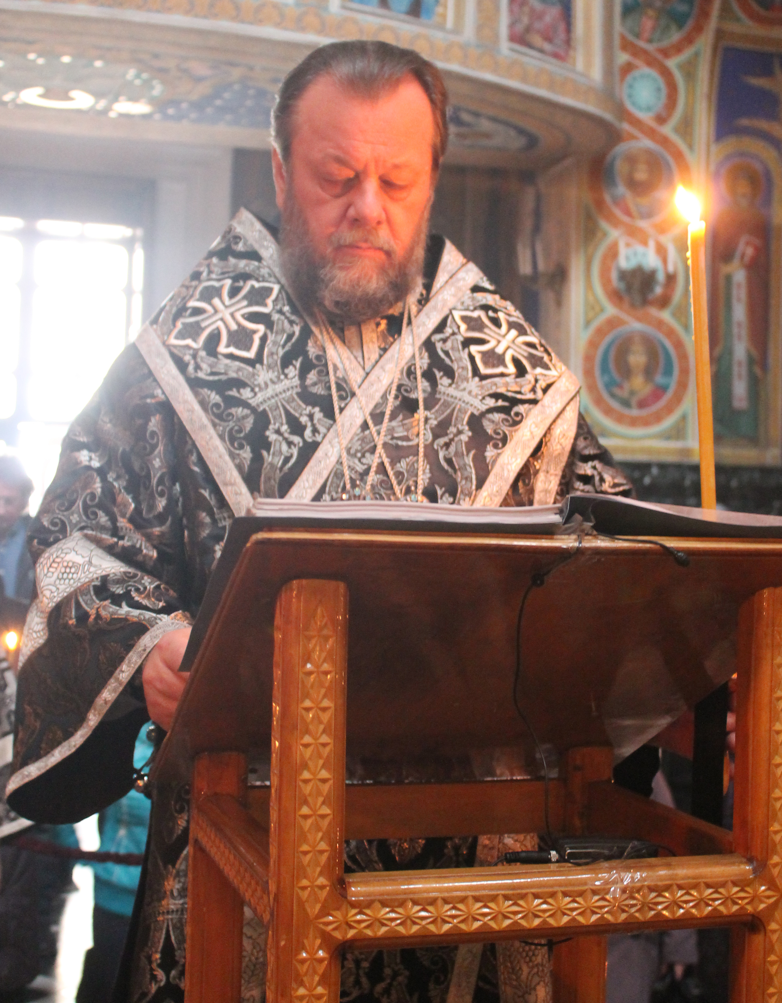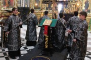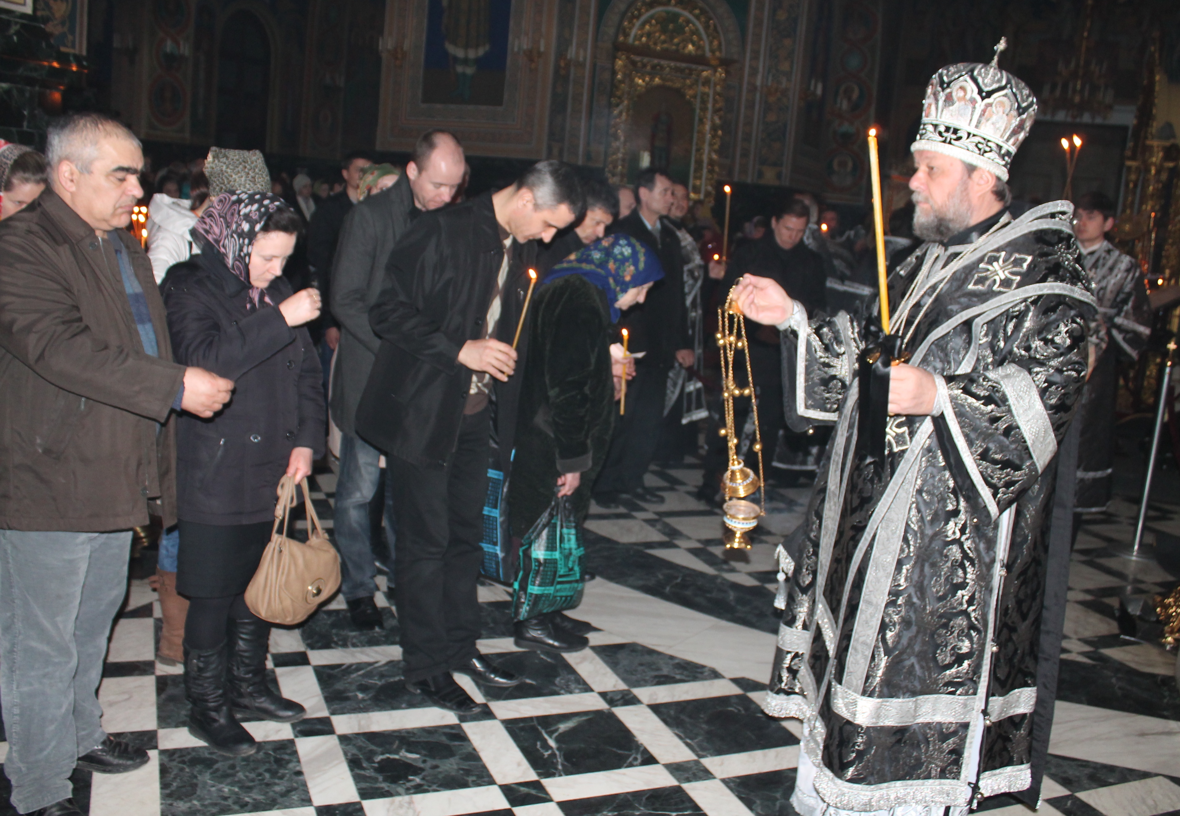 Этим вечером Высокопреосвященный митрополит Владимир вместе с духовенством кафедрального собора совершил богослужение пассии с чтением акафиста Страстям Христовым.