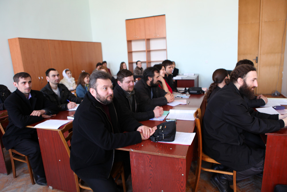 Утром 2 апреля гостей встретили в деканате филологического факультета Молдавского государственного университета, где состоялась их беседа с деканом Клавдией Чемыртан и заведующей кафедрой общего языкознания Александрой Герасим. За этим последовала встреча со слушателями мастерата по специальности «Филологические исследования и христианская духовность».