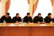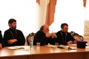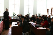 В полдень в епархиальном управлении педагоги встретились с методистами и инспекторами религии епархий для обсуждения наиболее актуальных проблем, стоящих перед школой в сфере преподавания дисциплины «Религия». Гости внесли ряд интересных предложений и рассказали об опыте Румынской Православной церкви по внедрению и преподаванию этого школьного предмета в течение последних двух десятилетий.