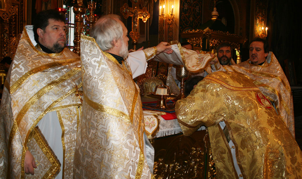В дальнейшем Предстоятель пожелал всем изобильного Нового года, особенно духовными дарами и прекрасными свершениями, все во славу Господа, затем, по традиции, Его Высокопреосвященство и служители собора посеяли прихожан.