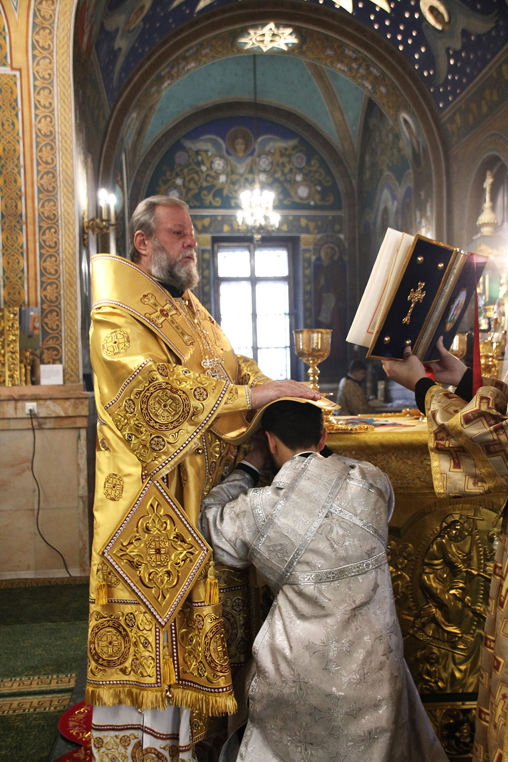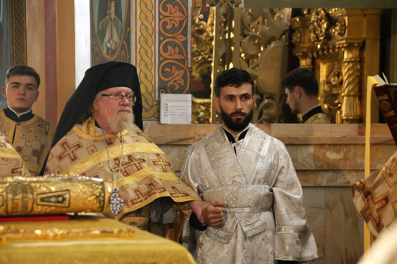 За богослужением, Высокопреосвященный Митрополит Владимир рукоположил в сан диакона выпускника Института международных отношений Молдовы (IRIM) и магистра богословия (специальность Патристика и Социальная помощь) Иулиана Ботезату.