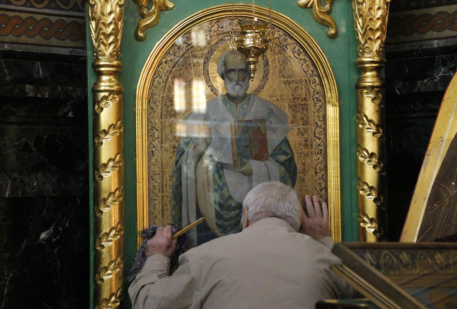 По заамвонной молитве последовал благодарственный молебен, после чего Высокопреосвященный Митрополит Владимир вместе с соборным духовенством совершил славление перед образом святителя Николая Чудотворца.