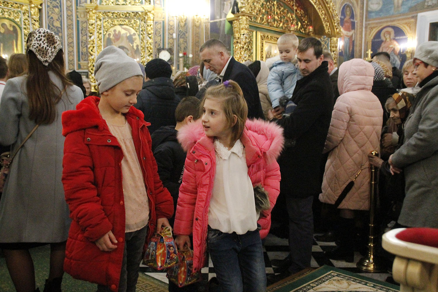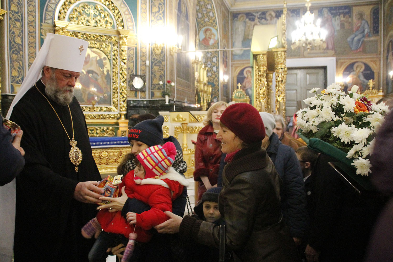 Одиннадцатый год подряд, по сложившейся доброй традиции, ко дню святителя Николая Чудотворца, Высокопреосвященный Митрополит Владимир приглашает детей в кафедральный собор Рождества Христова, чтобы разделить с ними радость этого всеми любимого праздника. В этот день, в храм пришло более 300 детей из различных детских учреждений города. В ходе установившегося доброго сотрудничества между Кишиневско-Молдавской митрополией и Муниципальным управлением по защите прав детей, в кафедральный собор были приглашены дети с ограниченными возможностями, которые получили из рук Митрополита Владимира наборы сладостей и архипастырское благословение. Помимо этого, все богомольцы получили в дар от архипастыря книги с Новым Заветом, Псалтирью и молитвенным правилом на русском языке, а также благословенные иконки с образом Божией Матери «Иерусалимская», доставленные со Святой Земли.
