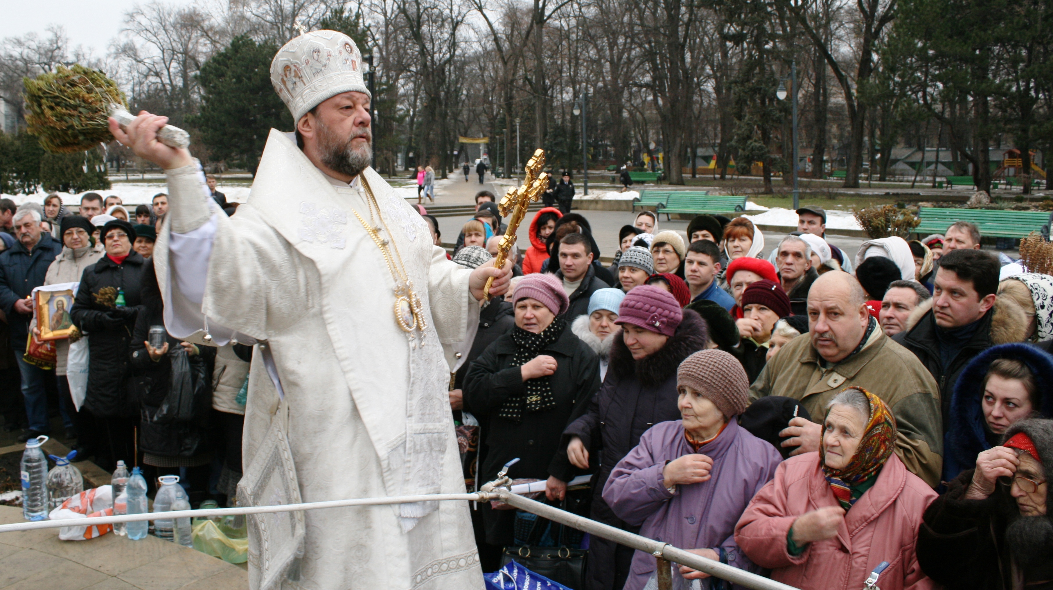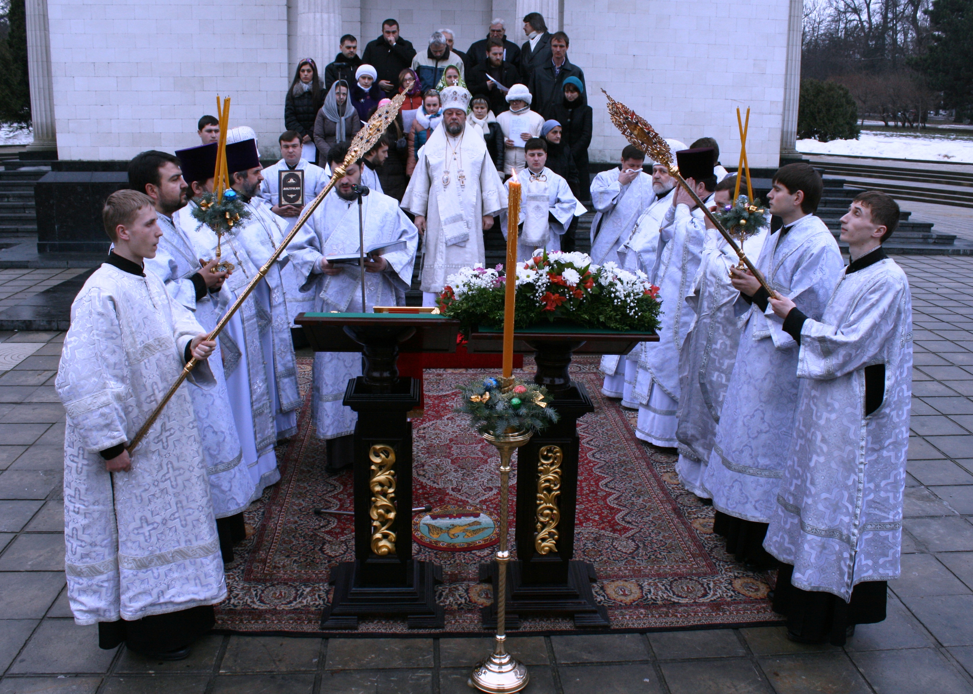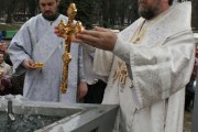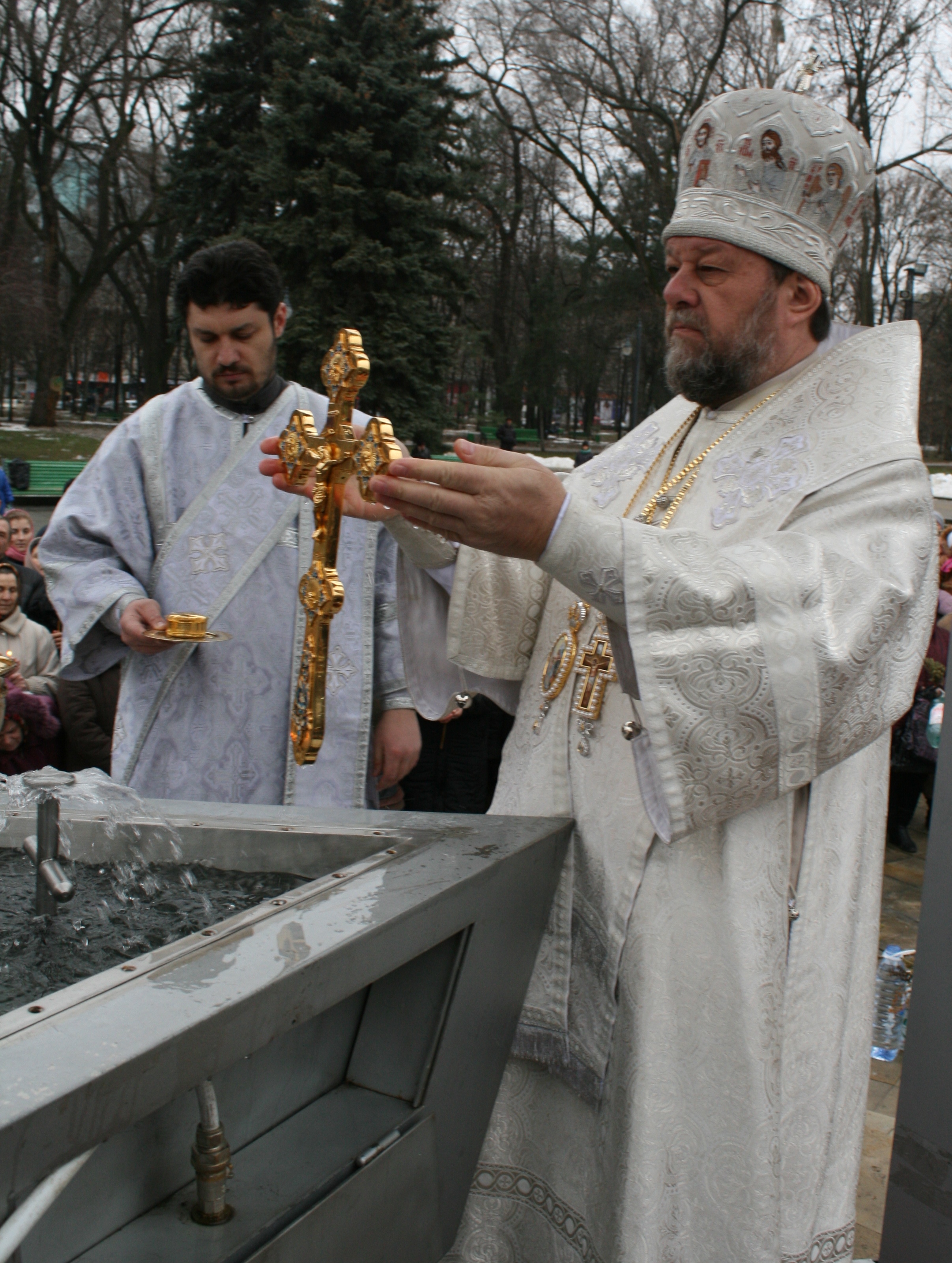 После литургии, в сквере кафедрального собора митрополит Владимир совершил чин великого освящения воды.