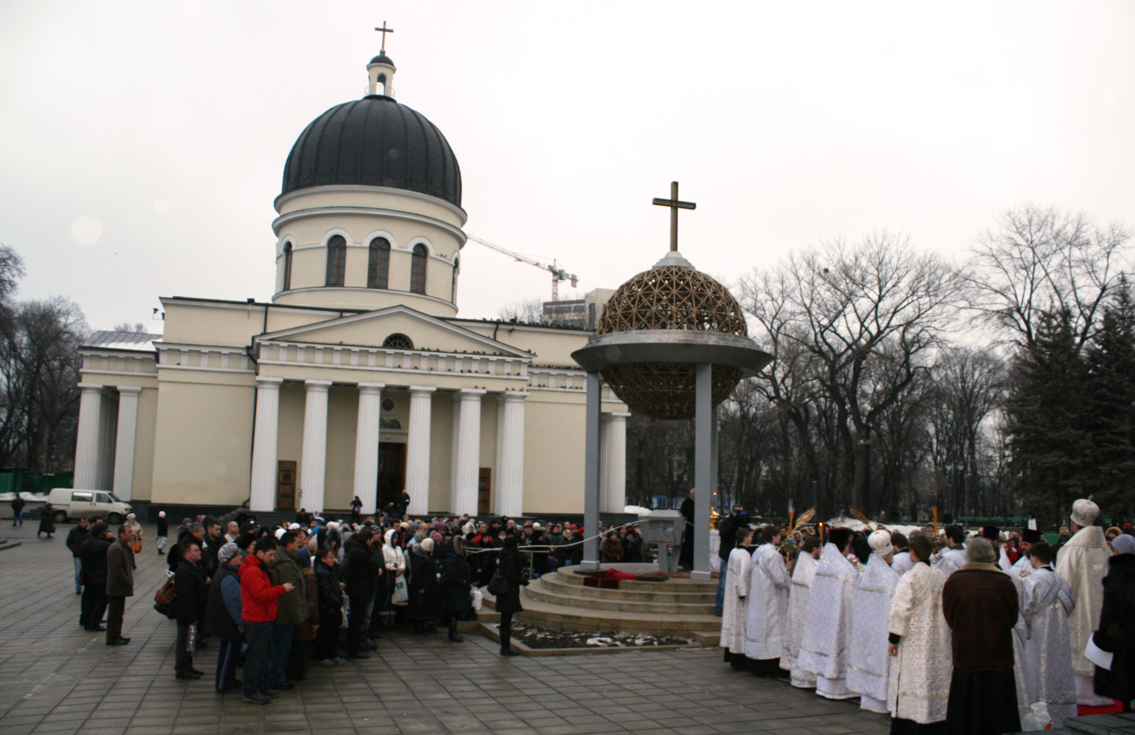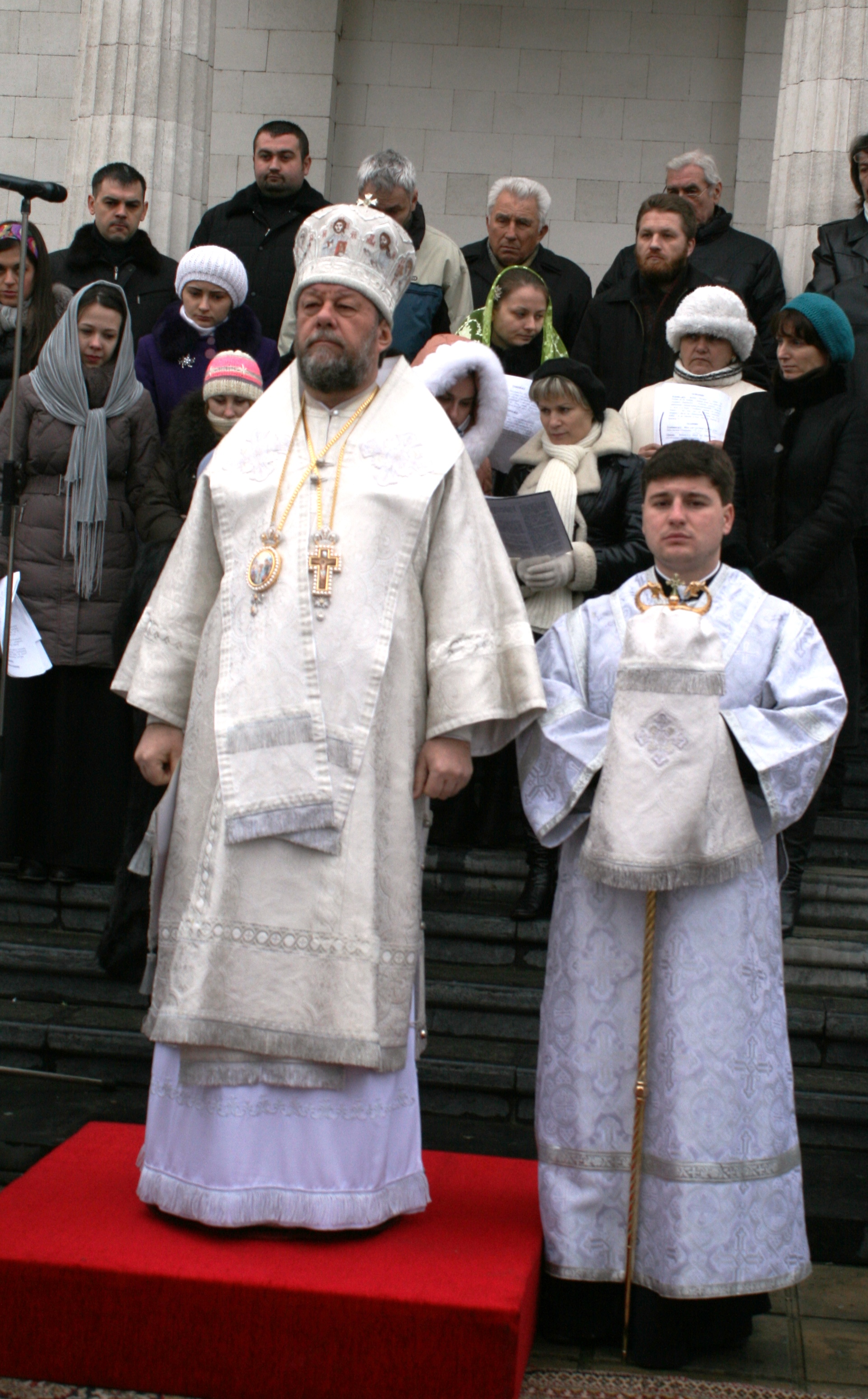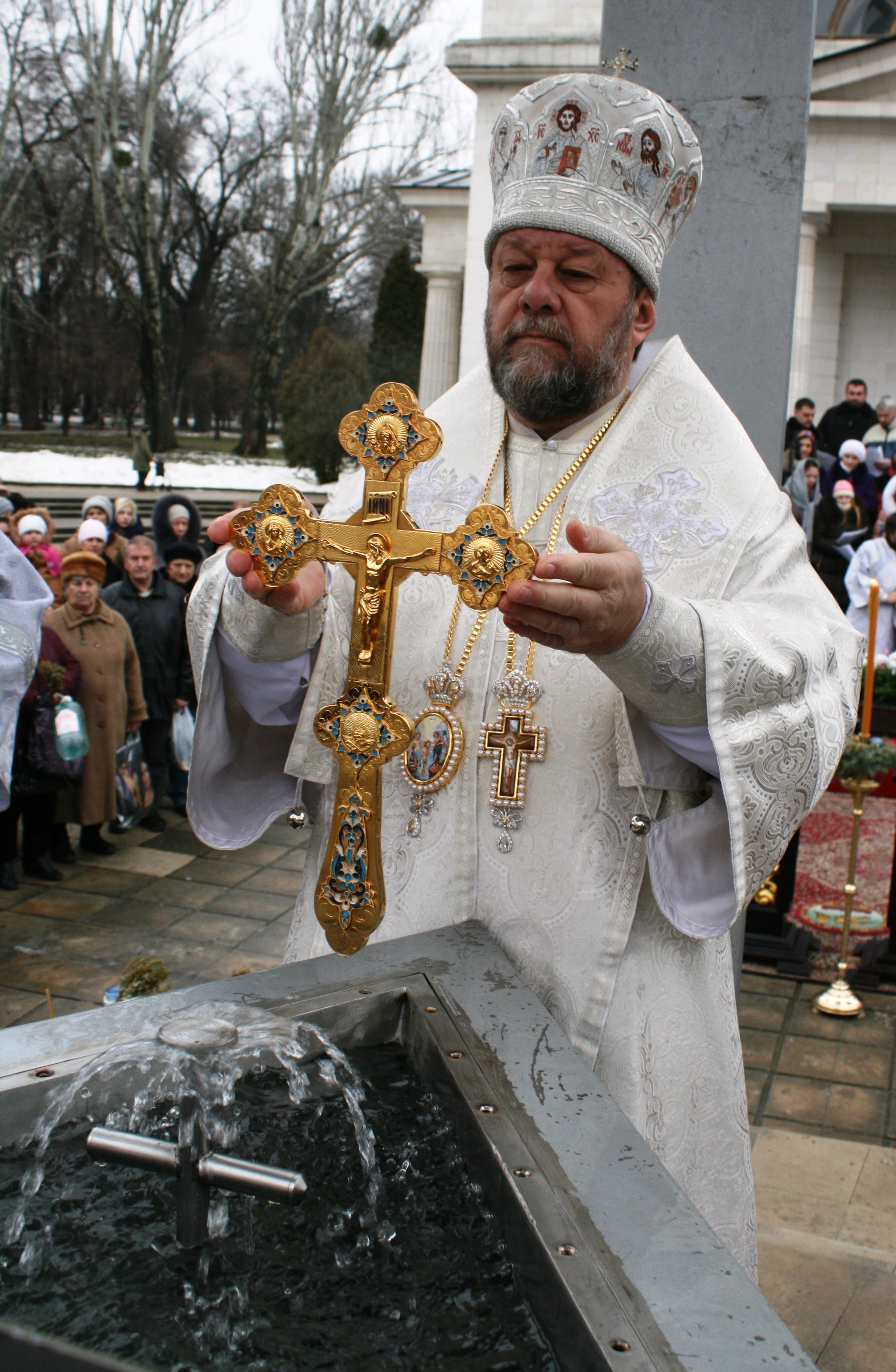 После литургии, в сквере кафедрального собора митрополит Владимир совершил чин великого освящения воды.