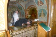 Особый прием ждал паломников в Голосеевской пустыни, которая расположена вблизи Киева. Настоятелем этого монастыря является наш земляк архим. Исаакий (Андроник), который с нескрываемой радостью встретил Предстоятеля Православной Церкви Молдовы, выразив ему самые искренние слова приветствия от лица всей монашеской общины. Владыка Митрополит совершил в этом монастыре Божественную литургию.