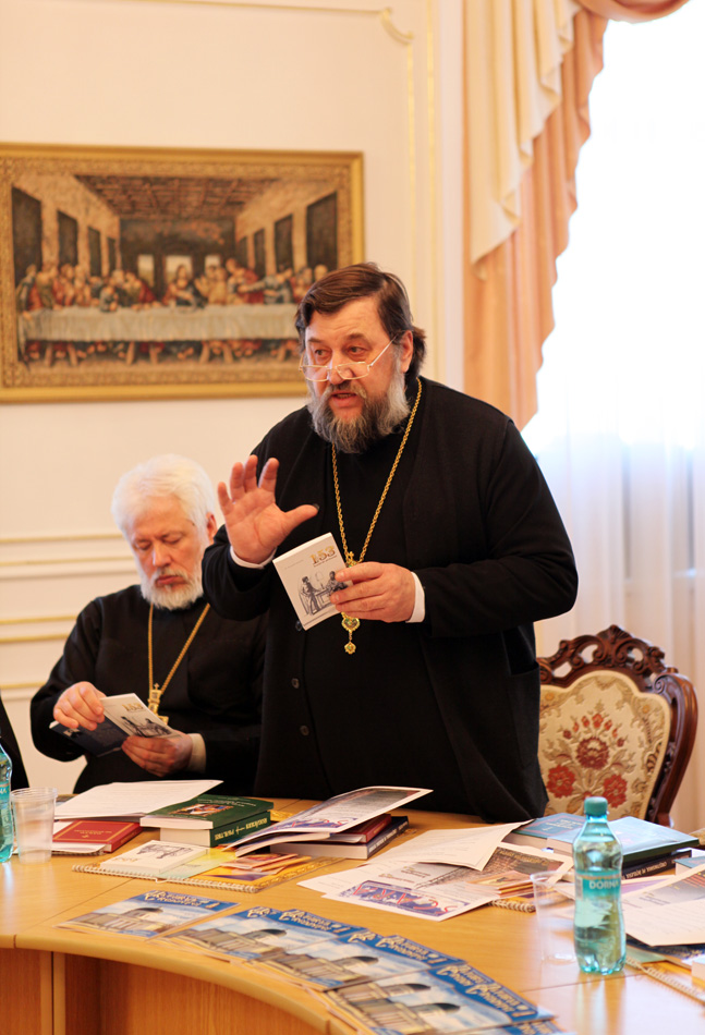 Митр. прот. Зосима Тоя, председатель епархиального Отдела Церковного Издательства, Цензуры и Взаимоотношений с средствами Масс-медиа, в своем выступлении отметил основные достижения Церкви в издательской сфере. Отец Зосима подчеркнул, что презентация посвящена юбилейной дате – двухсотлетию со времени создания Кишиневской епархии, но и отдельно – изданиям православной книги.