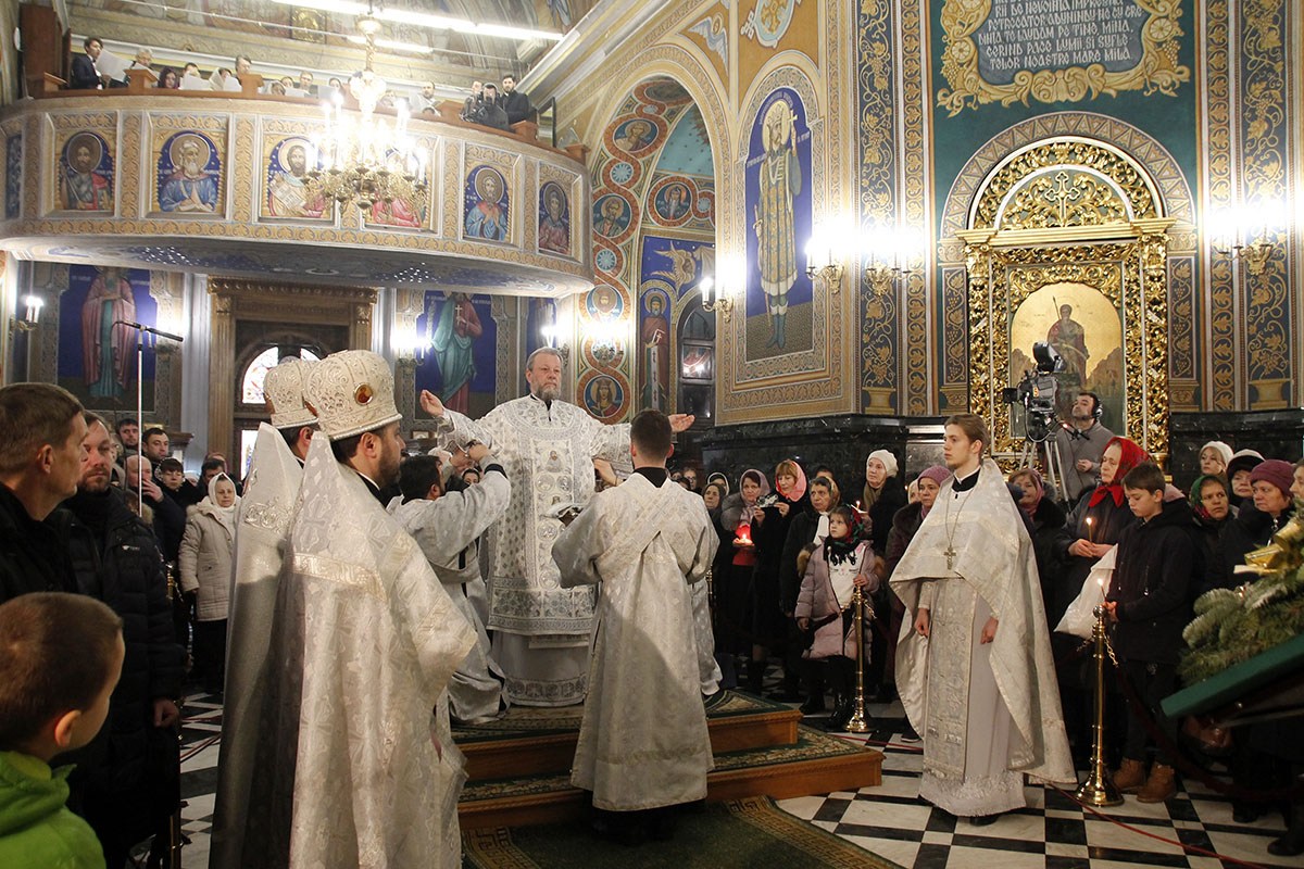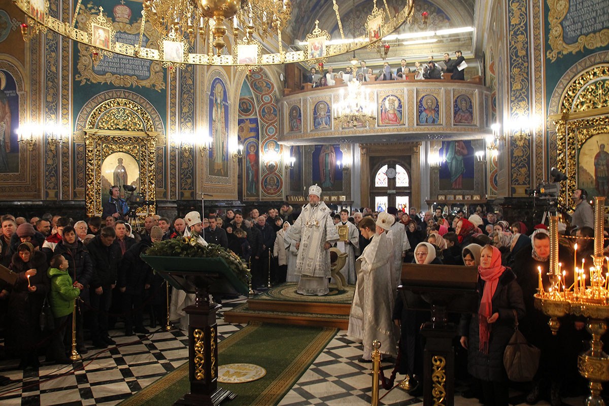 Богослужебные песнопения исполнял большой соборный хор под управлением регента Ангелины Павлюченко.