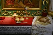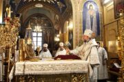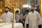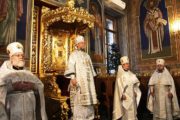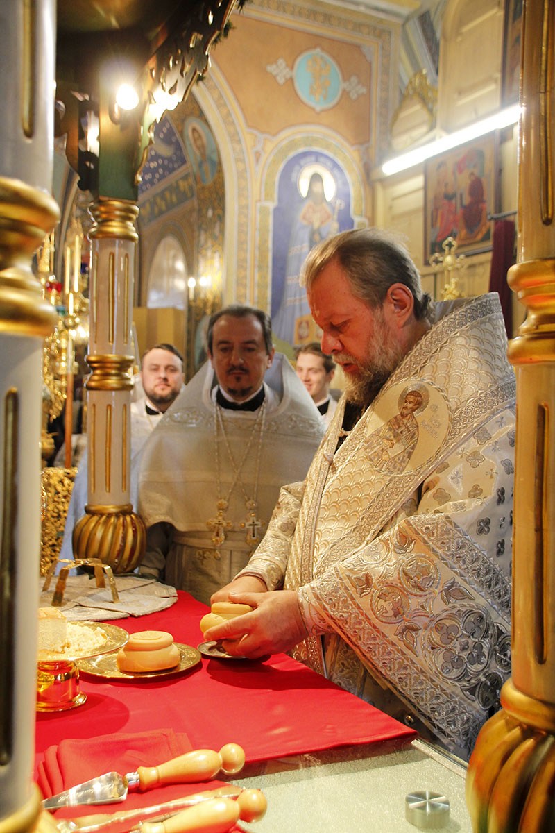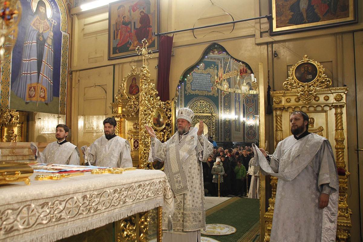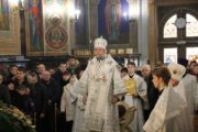 Его Высокопреосвященству сослужили: секретарь митрополии митрофорный протоиерей Вадим Кейбаш, соборное духовенство.