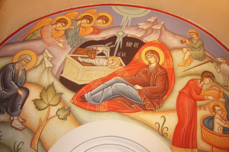 Когда исполнилась полнота времени, небо соединилось с землей, ангелы же возвестили Вифлеемским пастухам, что днесь родился Спаситель и Сын Божий, «воплотившийся от Духа Свята и Марии Девы» (Символ Веры).