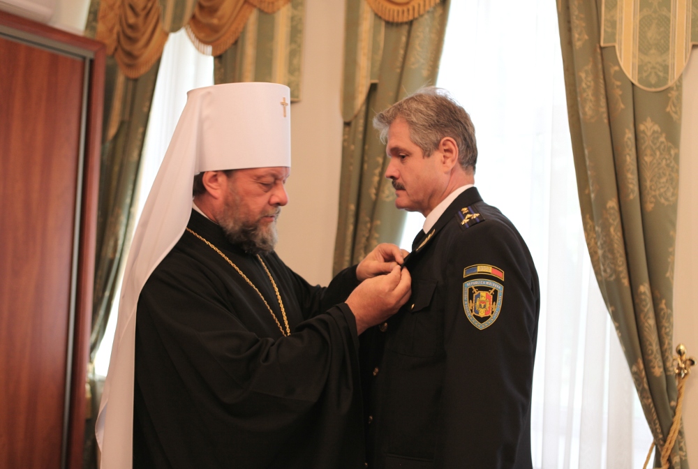 В знак признательности за приложенные труды по обеспечению безопасности и надлежащему проведению главных мероприятий в жизни Православной Церкви Молдовы, Его Высокопреосвященство наградил гостей памятной медалью «Митрополит Гавриил Бэнулеску-Бодони», приуроченной к 200-летию организационно-административного становления Кишиневско-Хотинской епархии.