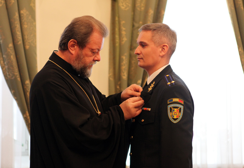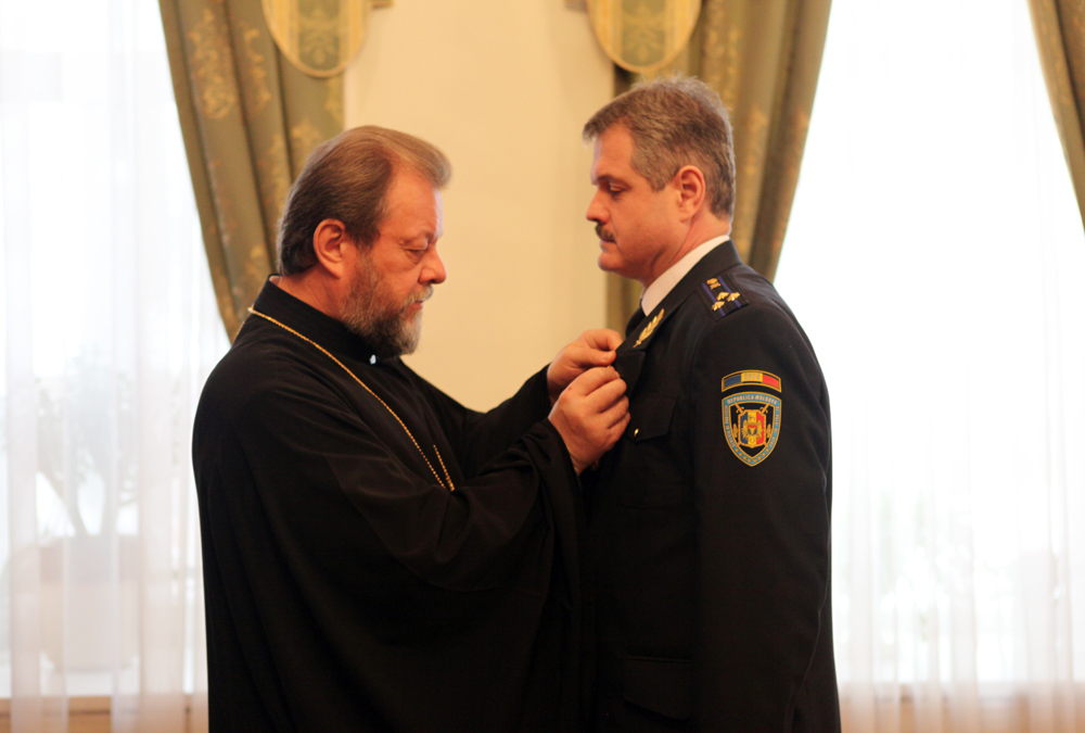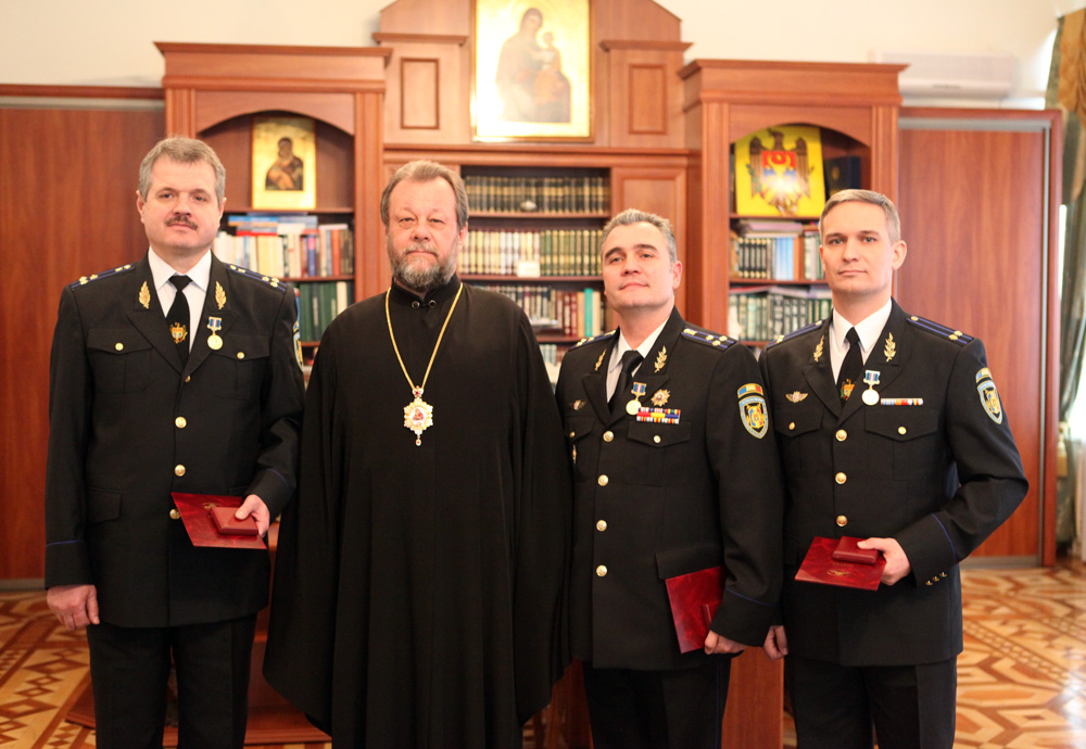 Высокопреосвященный митрополит Владимир принял в епархиальном управлении нескольких сотрудников Службы государственной охраны и вручил им церковные награды в благодарность за их работу по обеспечению безопасности и во время проведения самых важных мероприятий в жизни Молдавской Православной Церкви.