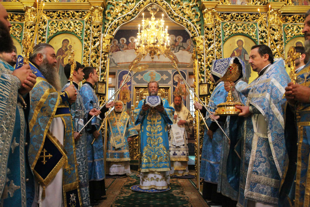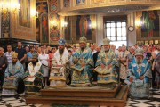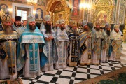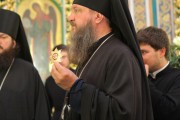 Его Высокопреосвященству сослужили: Высокопреосвященный архиепископ Тираспольский и Дубоссарский Савва, Преосвященный епископ Кагульский и Комратский Анатолий, Преосвященный епископ Унгенский и Ниспоренский Петр, Преосвященный епископ Единецкий и Бричанский Никодим, Преосвященный епископ Нефтекамский и Бирский Амвросий, секретарь Митрополии митрофорный протоиерей Вадим Кейбаш, председатель епархиального Отдела по делам монастырей архимандрит Силуан (Шалару), настоятели монастырей и благочинные церквей Кишиневской епархии, соборное духовенство.