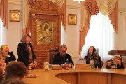 Далее, гостей пригласили в конференц-зал, где для них был накрыт сладкий стол. В беседе с владыкой Митрополитом ученики узнали о повседневной деятельности Митрополии, о совместных проектах с различными государственными и общественными структурами, посвященных работе с детьми и молодежью.