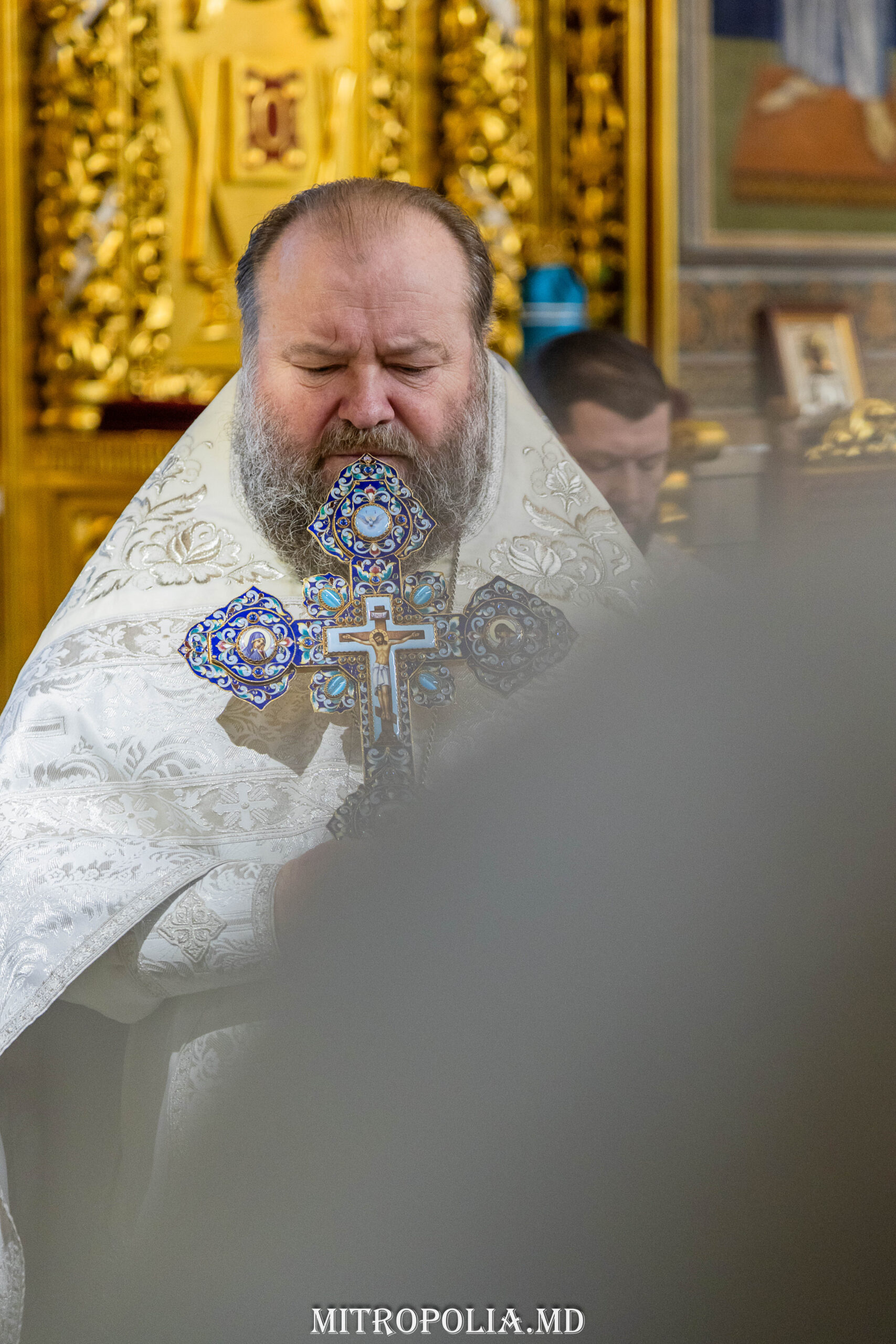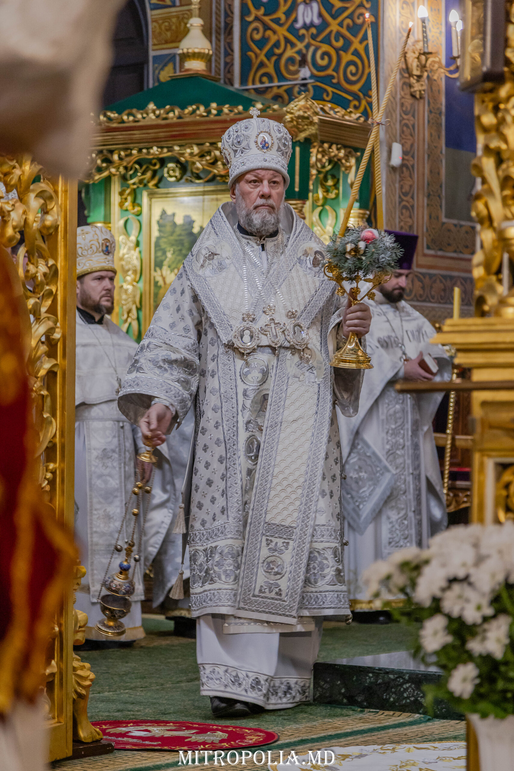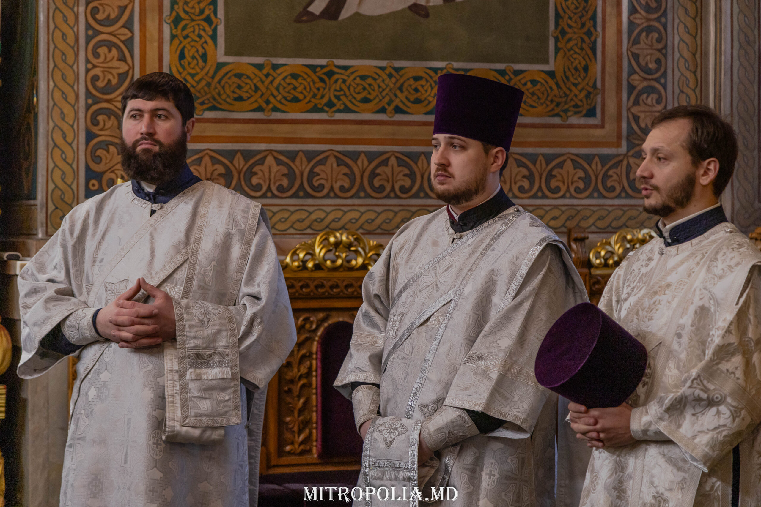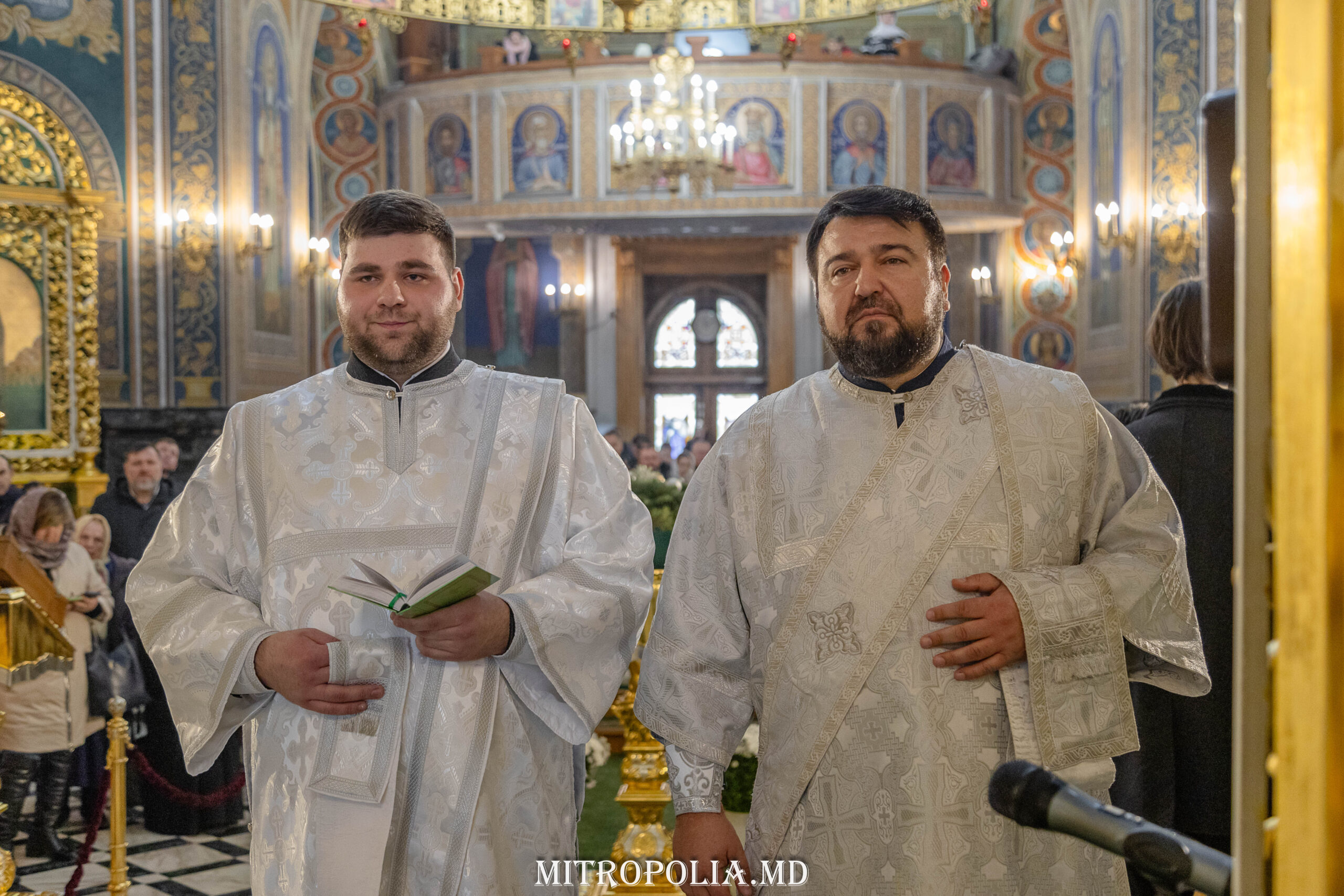 Его Высокопреосвященству сослужили: Преосвященные викарные епископы Сорокский Иоанн, Орхейский Силуан, Кэприянский Филарет, митрофорный протоиерей Вадим Кейбаш, секретарь Молдавской митрополии, архимандрит Николай (Рошка), председатель Синодального отдела по взаимоотношению с учреждениями МВД, Вооруженными силами и Правоохранительными органами и духовник-администратор Кишиневского Феодоро-Тироновского Чуфлинского женского монастыря, митрофорный протоиерей Игорь Мэмэлигэ, настоятель Димитриевского храма г. Вадул-луй-Водэ Кишиневского муниципия, соборное духовенство.