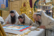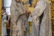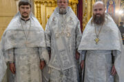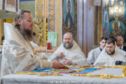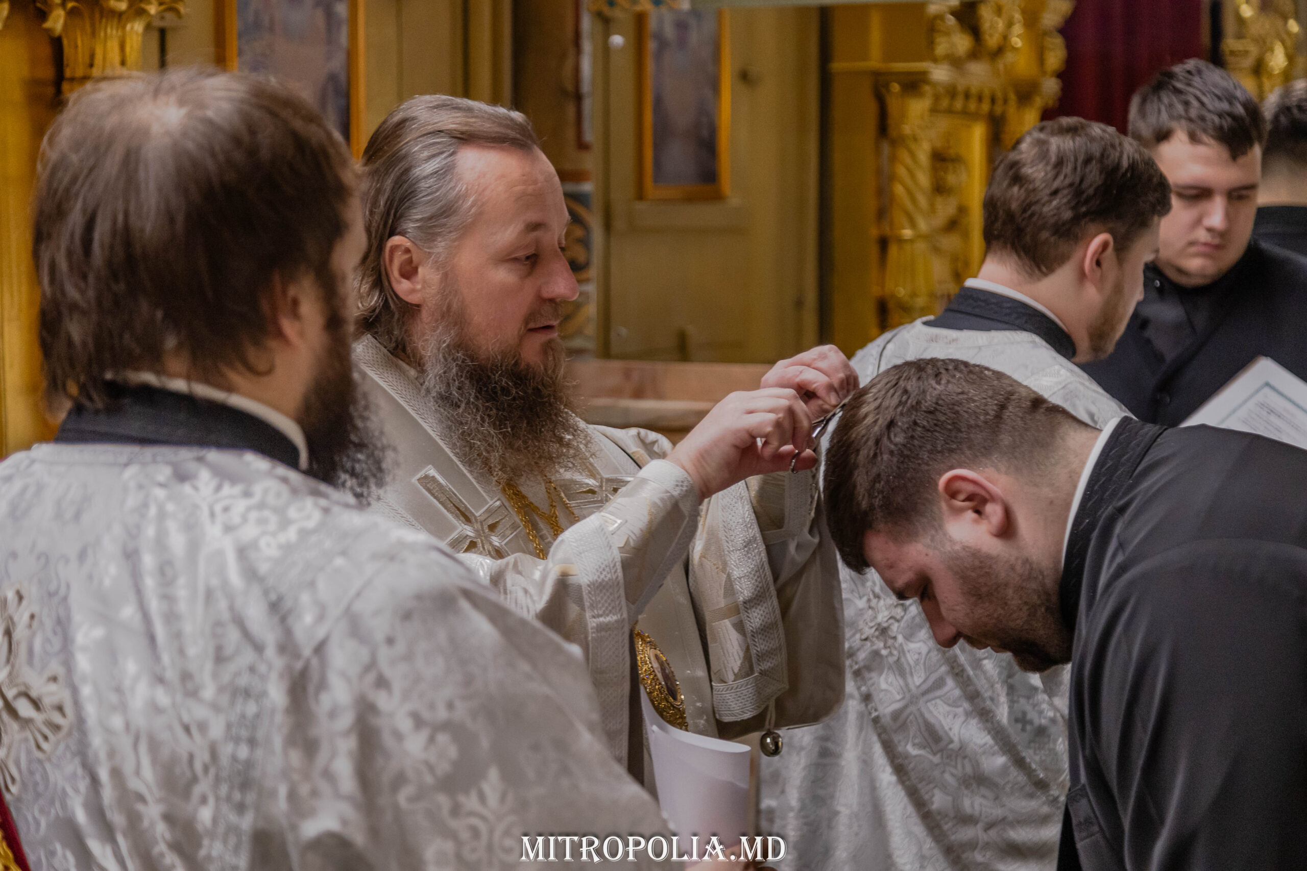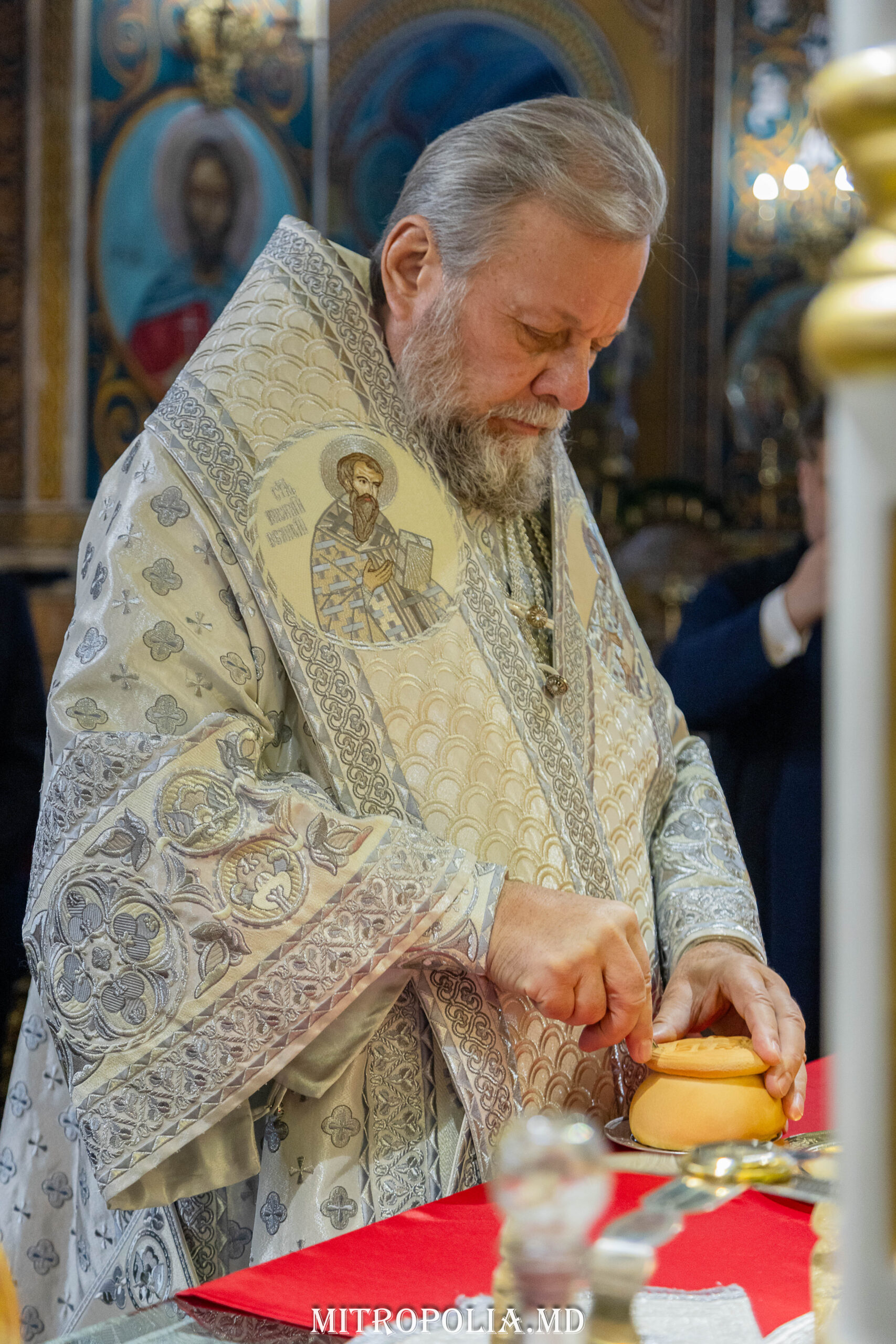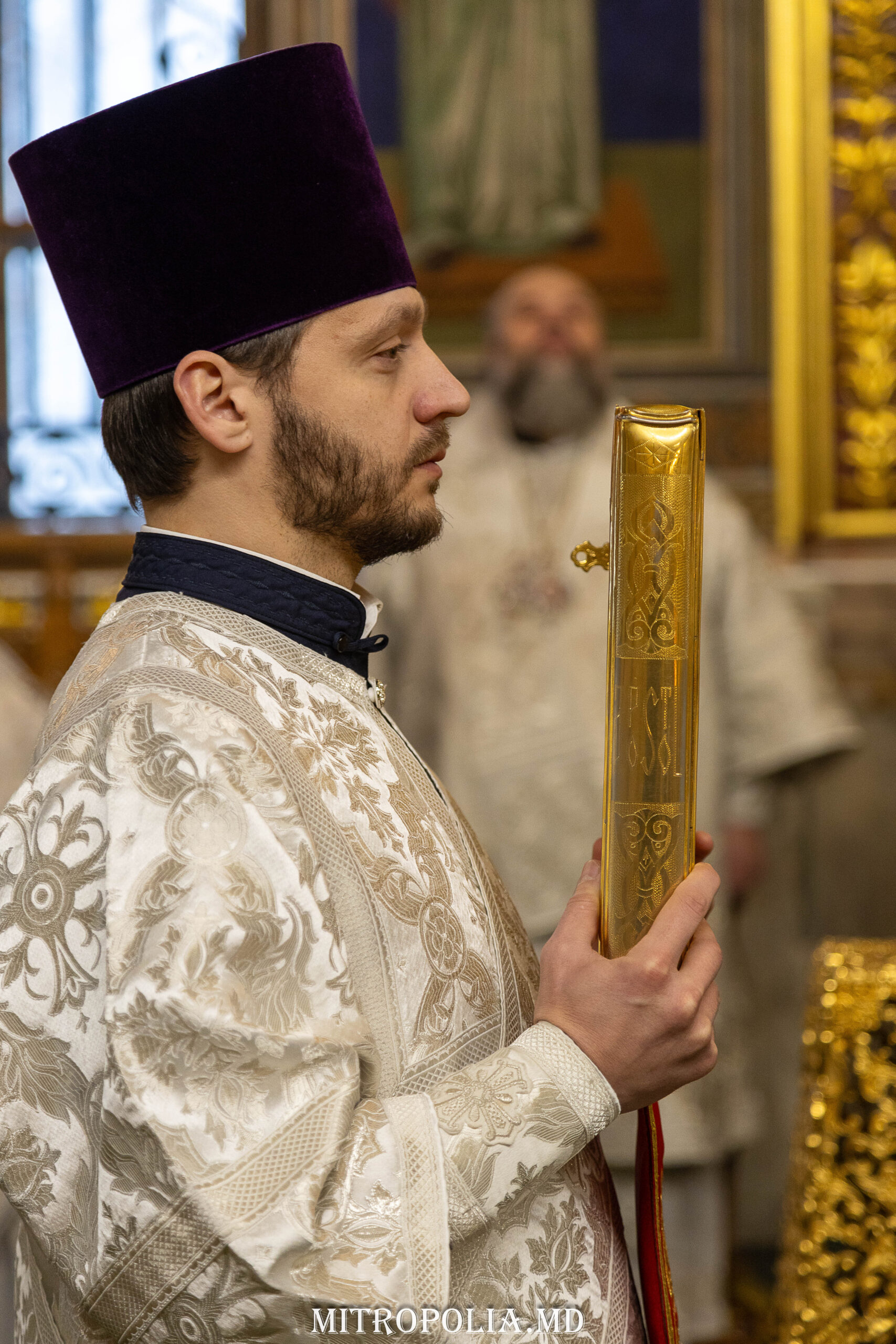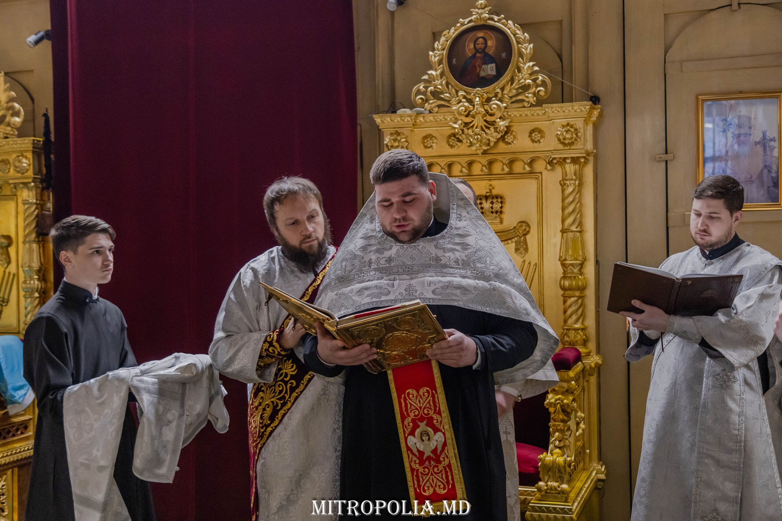 Его Высокопреосвященству сослужили: Преосвященные викарные епископы Сорокский Иоанн, Орхейский Силуан, Кэприянский Филарет, митрофорный протоиерей Вадим Кейбаш, секретарь Молдавской митрополии, архимандрит Николай (Рошка), председатель Синодального отдела по взаимоотношению с учреждениями МВД, Вооруженными силами и Правоохранительными органами и духовник-администратор Кишиневского Феодоро-Тироновского Чуфлинского женского монастыря, митрофорный протоиерей Игорь Мэмэлигэ, настоятель Димитриевского храма г. Вадул-луй-Водэ Кишиневского муниципия, соборное духовенство.