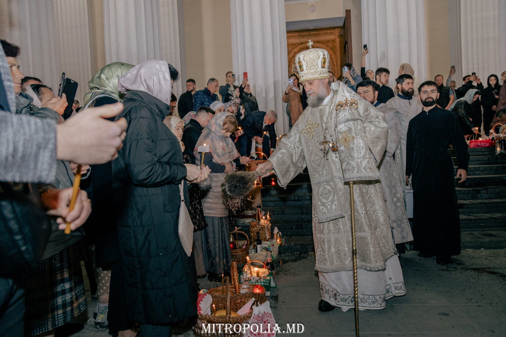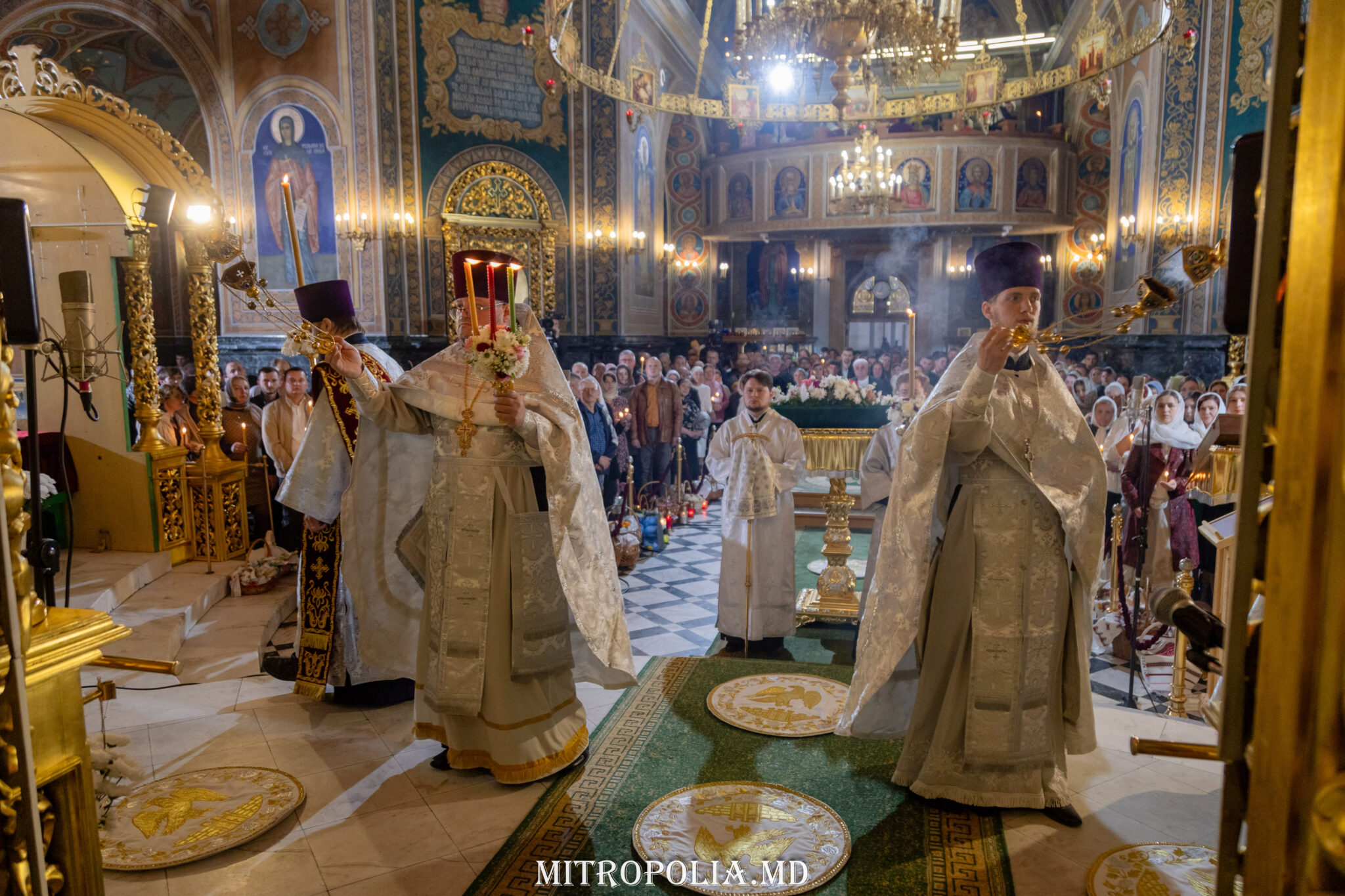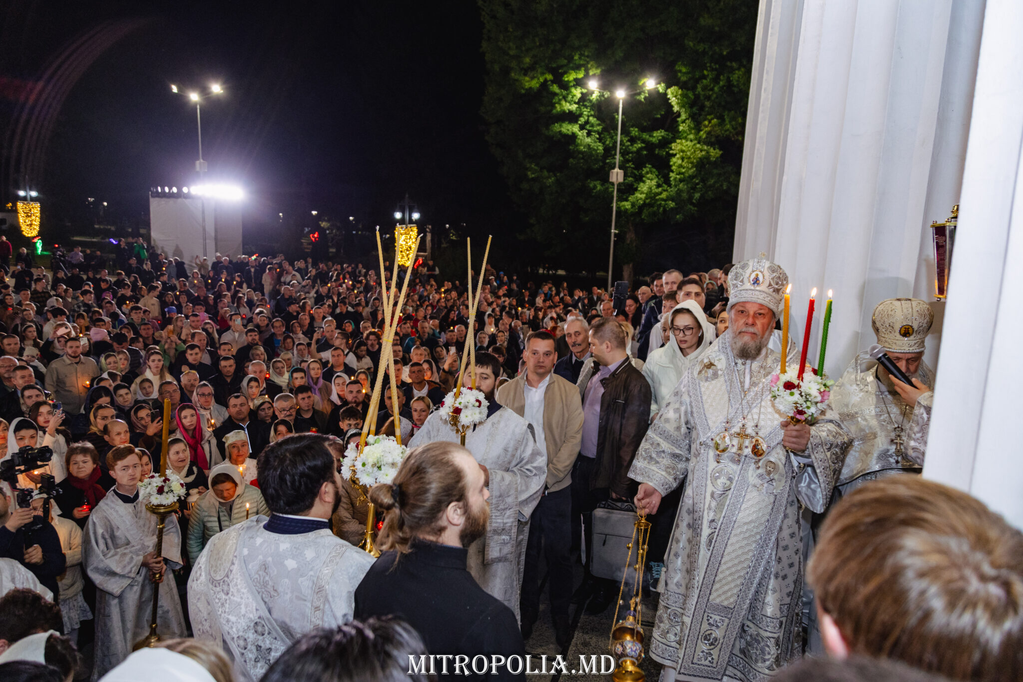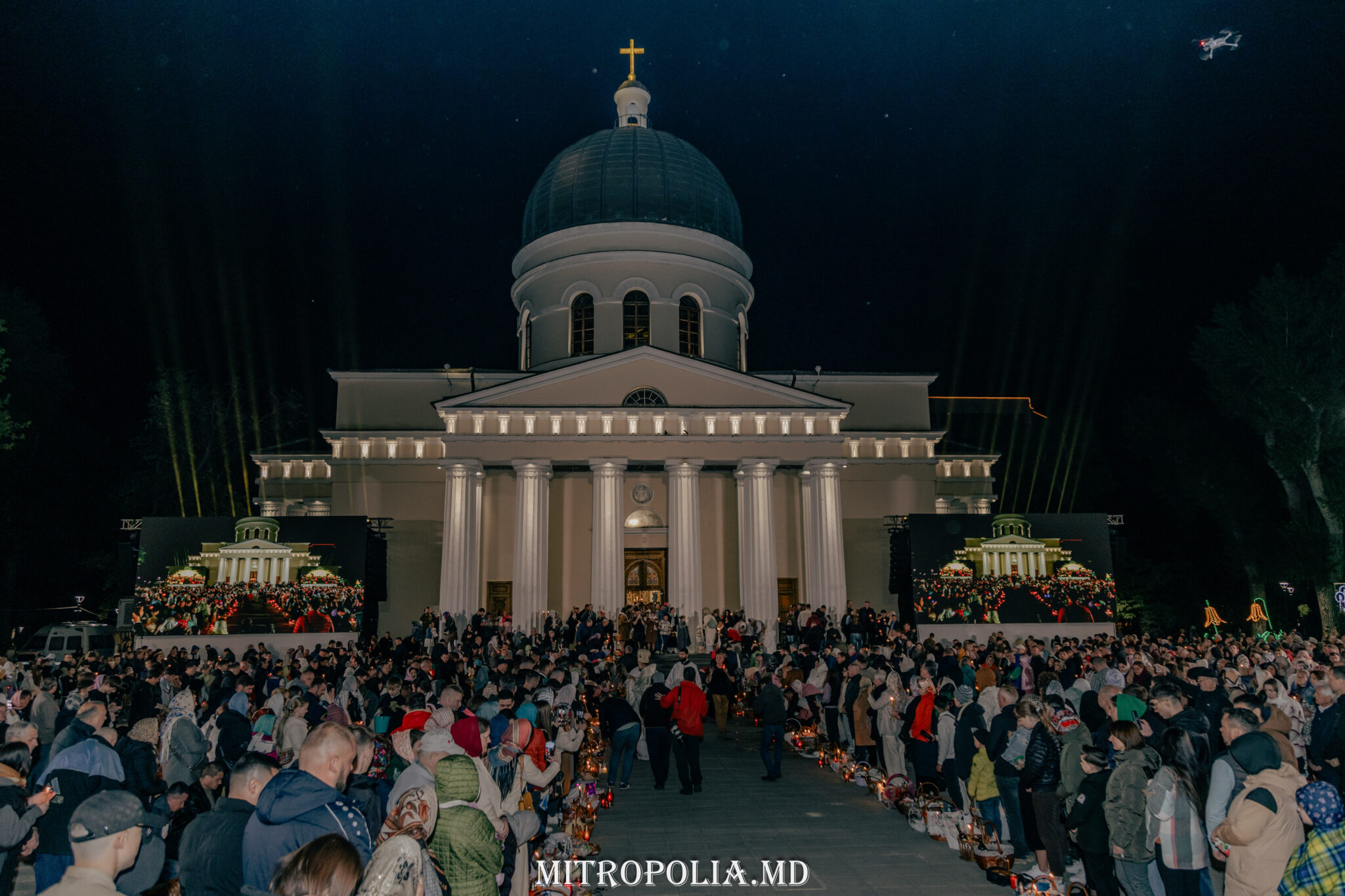 В ночь с 4 на 5 мая 2024 года в кафедральном соборе Рождества Христова Высокопреосвященный Митрополит Кишиневский и всея Молдовы Владимир совершил Пасхальные богослужения – полунощницу, крестный ход, Пасхальную заутреню и Божественную литургию свт. Иоанна Златоуста.