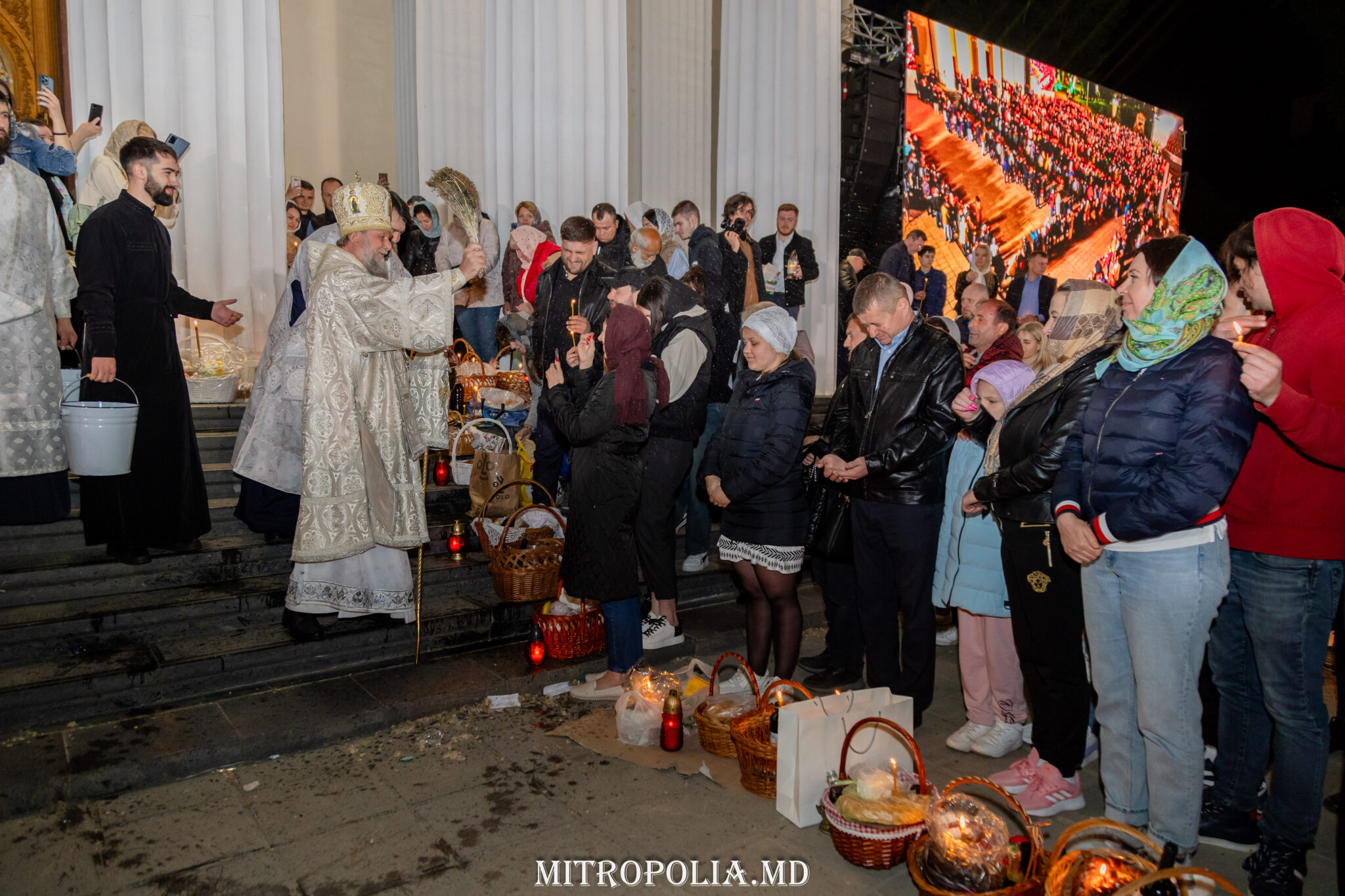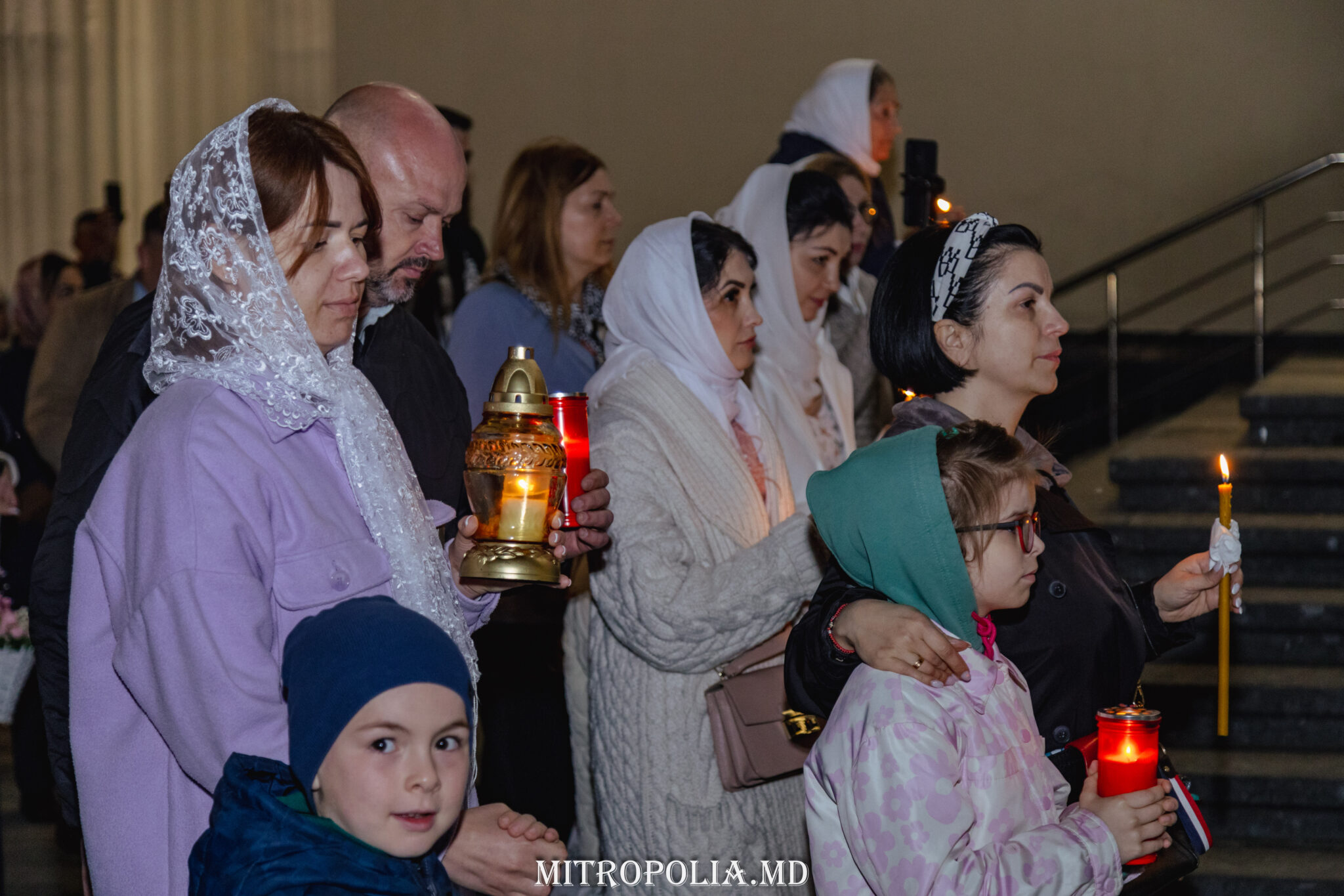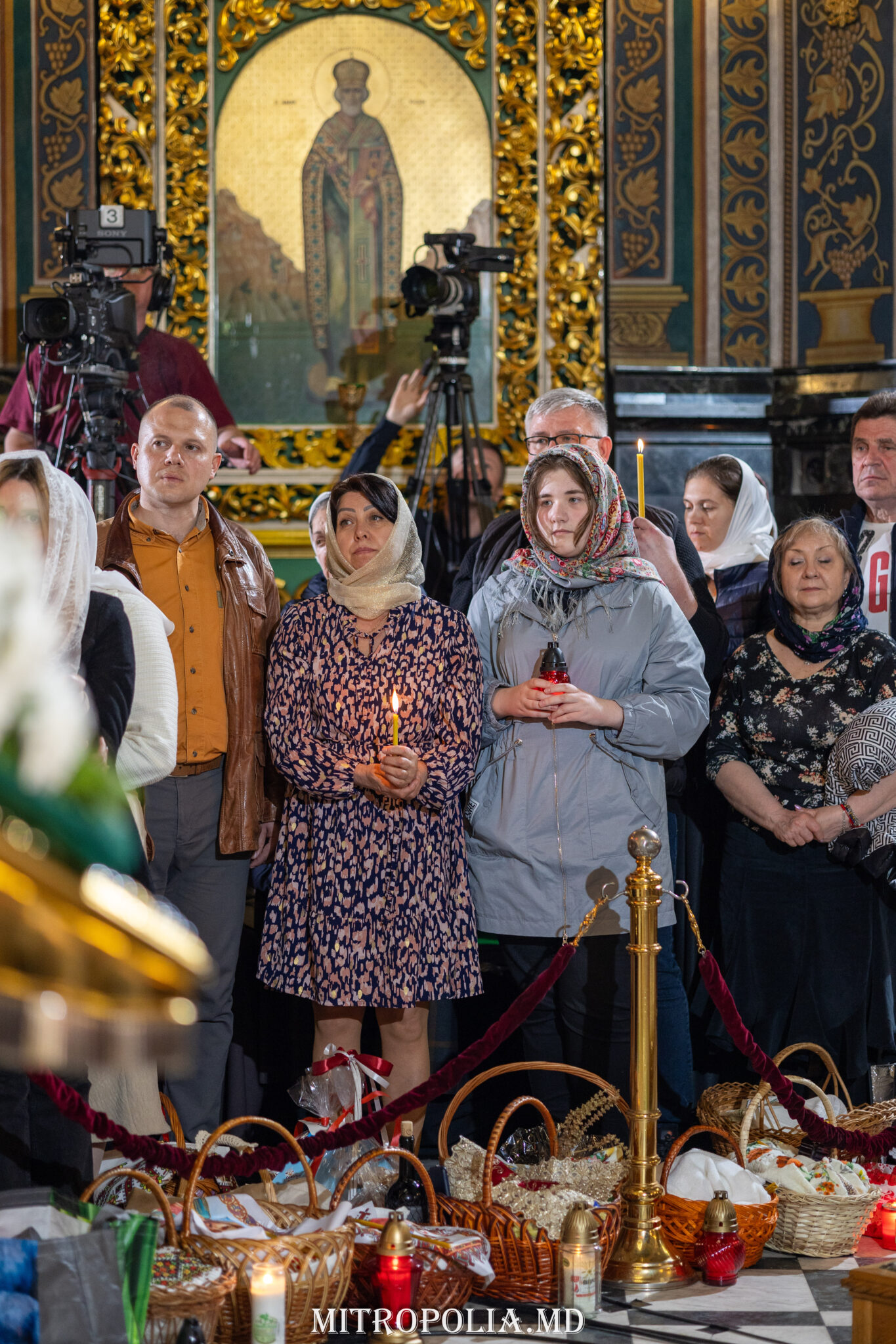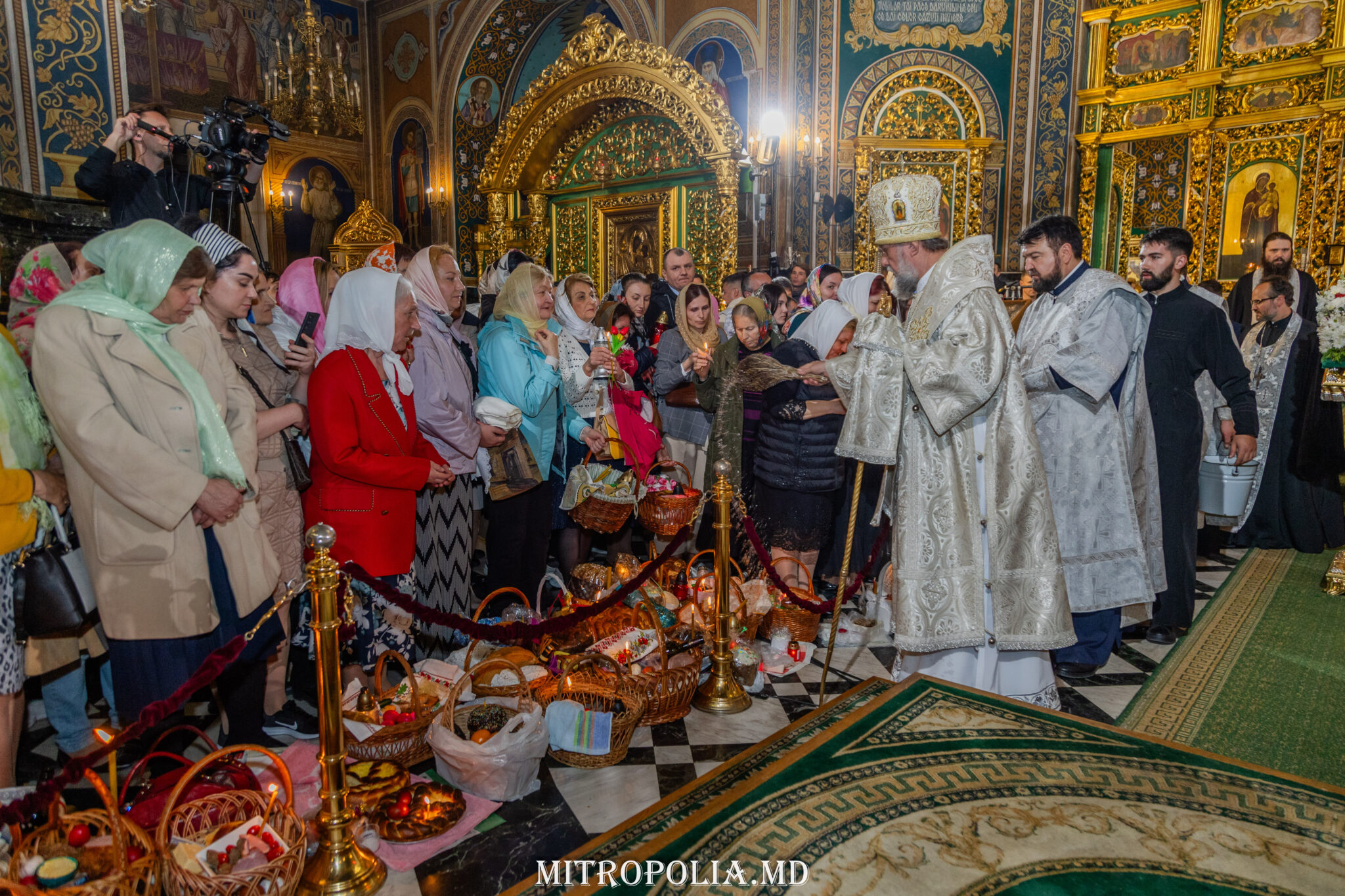 В ночь с 4 на 5 мая 2024 года в кафедральном соборе Рождества Христова Высокопреосвященный Митрополит Кишиневский и всея Молдовы Владимир совершил Пасхальные богослужения – полунощницу, крестный ход, Пасхальную заутреню и Божественную литургию свт. Иоанна Златоуста.