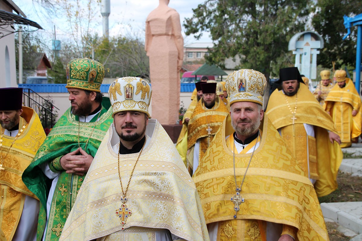 Его Высокопреосвященству сослужили: секретарь Кишиневско-Молдавской митрополии митр. прот. Вадим Кейбаш, благочинный церквей Теленештского района митр. прот. Мариан Болдеску, настоятель Успенской церкви г. Кишинева митр. прот. Михаил Смеря, духовенство Теленештского благочиния и другие гости в священном сане.