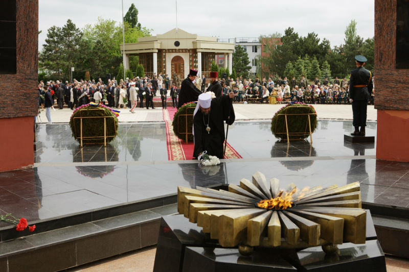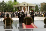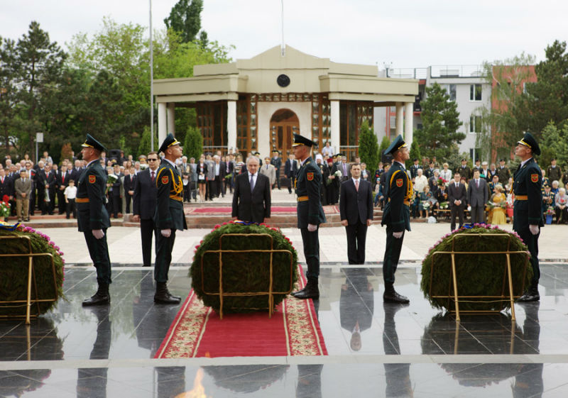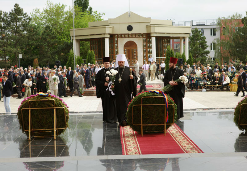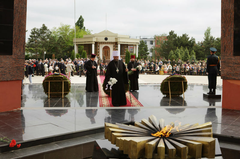 В праздник Победы во всех городах и селах республики на мемориалах героев были совершены молебны о вечном упокоении православных воинов, погибших при исполнении гражданского долга.