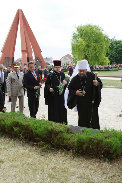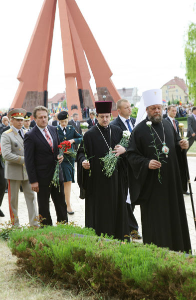 В 67 годовщину Победы Высокопреосвященный митрополит Владимир в сопровождении секретаря митрополии прот. Вадима Кейбаша и прот. Октавиана Мошина участвовал в церемонии возложения цветов на мемориальном комплексе «Вечность».