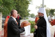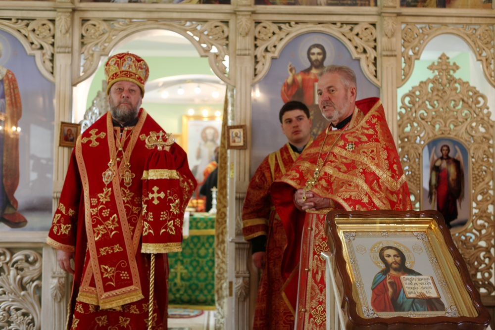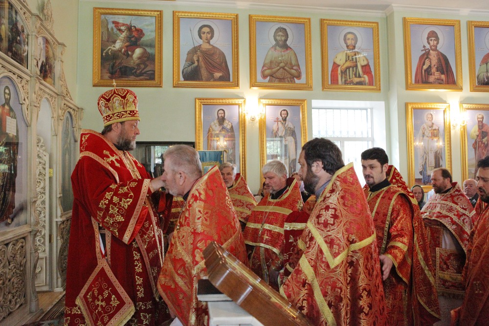 Владыку Митрополита встречал собор священнослужителей во главе с настоятелем прихода митр. прот. Василием Стамати.