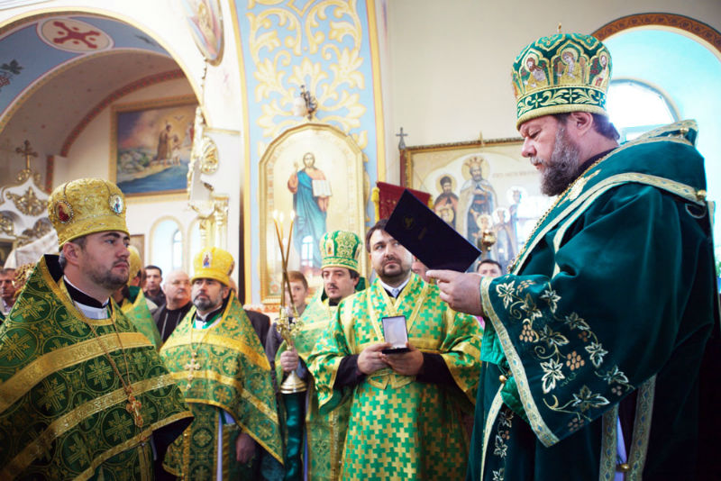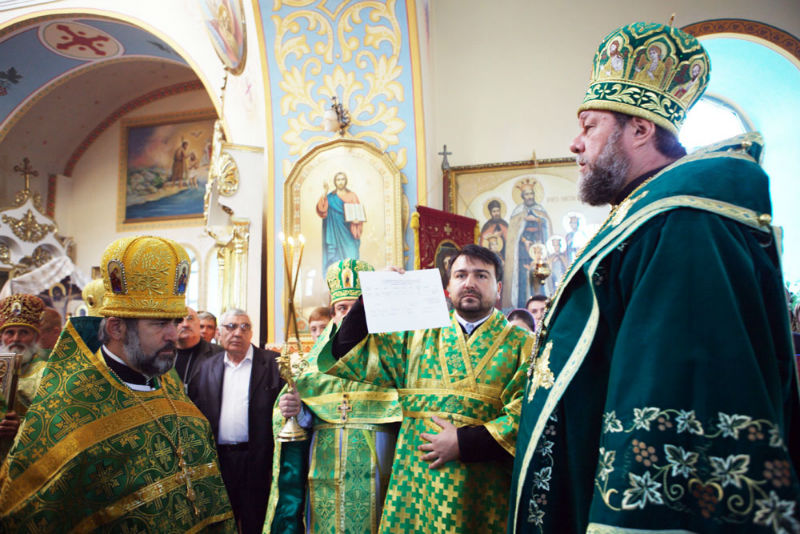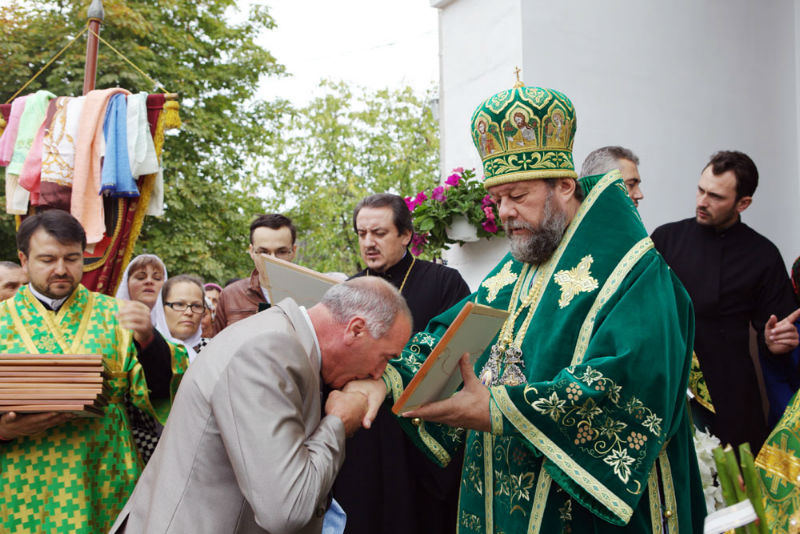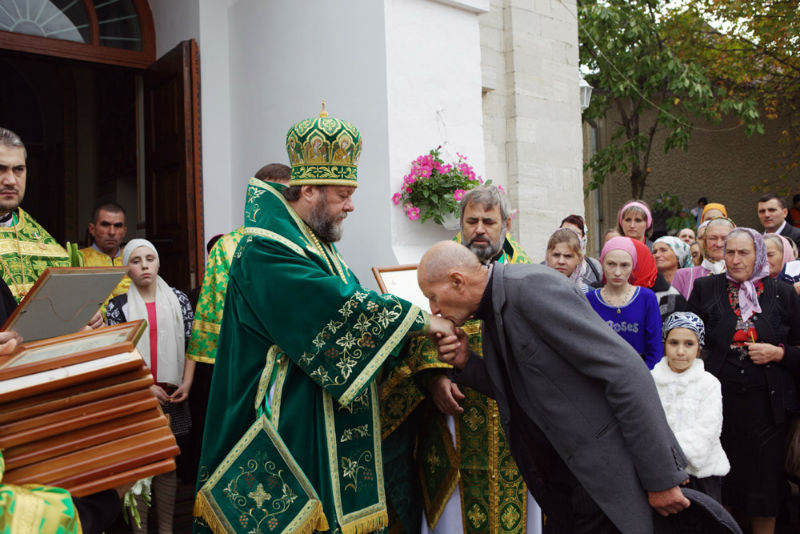 За вклад в благоустройство церкви и хорошую организацию приходской жизни владыка Владимир наградил настоятеля, митр. прот. Федора Постикэ, правом служить литургию с открытыми Царскими вратами до «Отче наш».